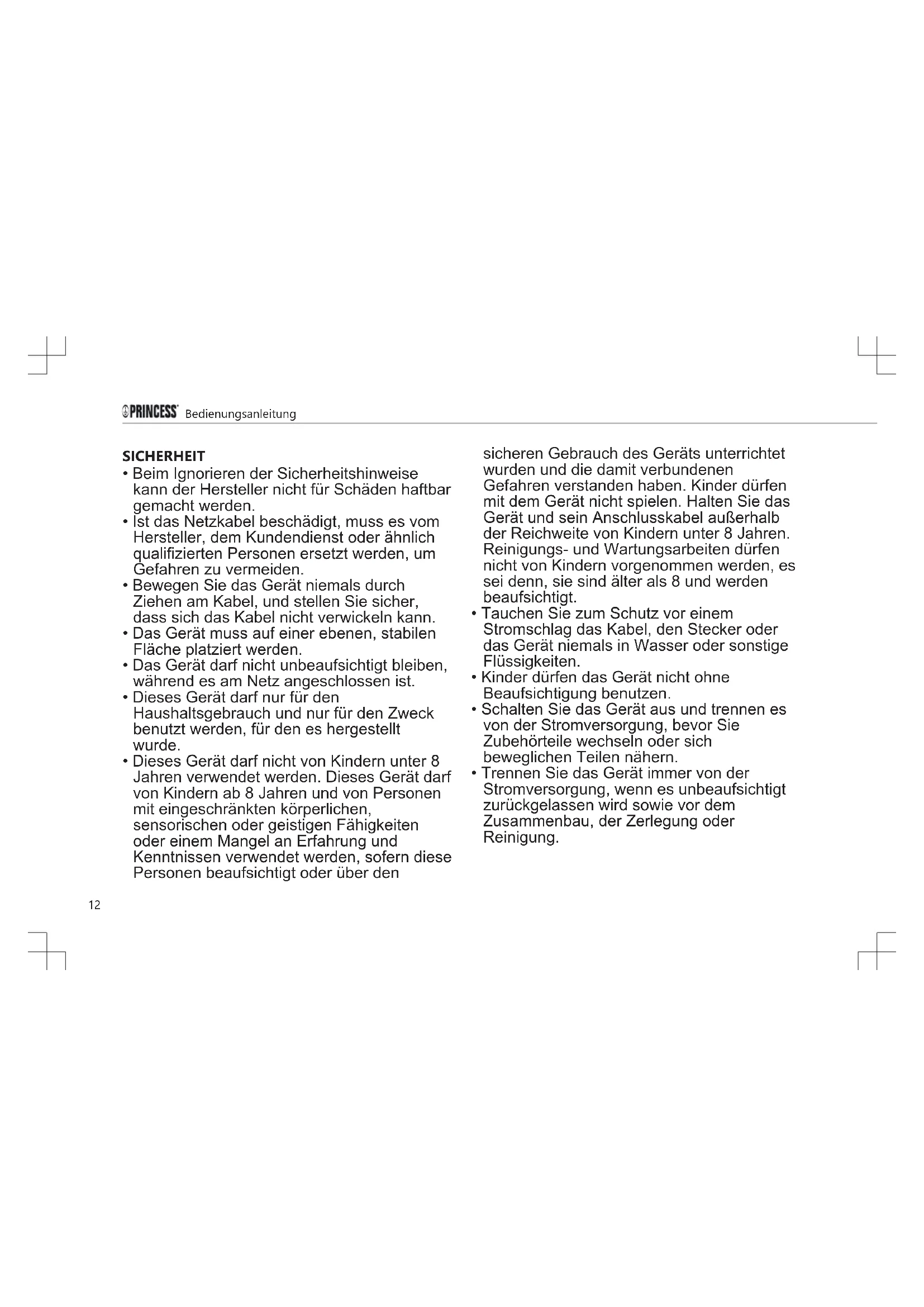 Finden Sie kostenlos die Bedienungsanleitung des Geräts 201850 PRINCESS als PDF.