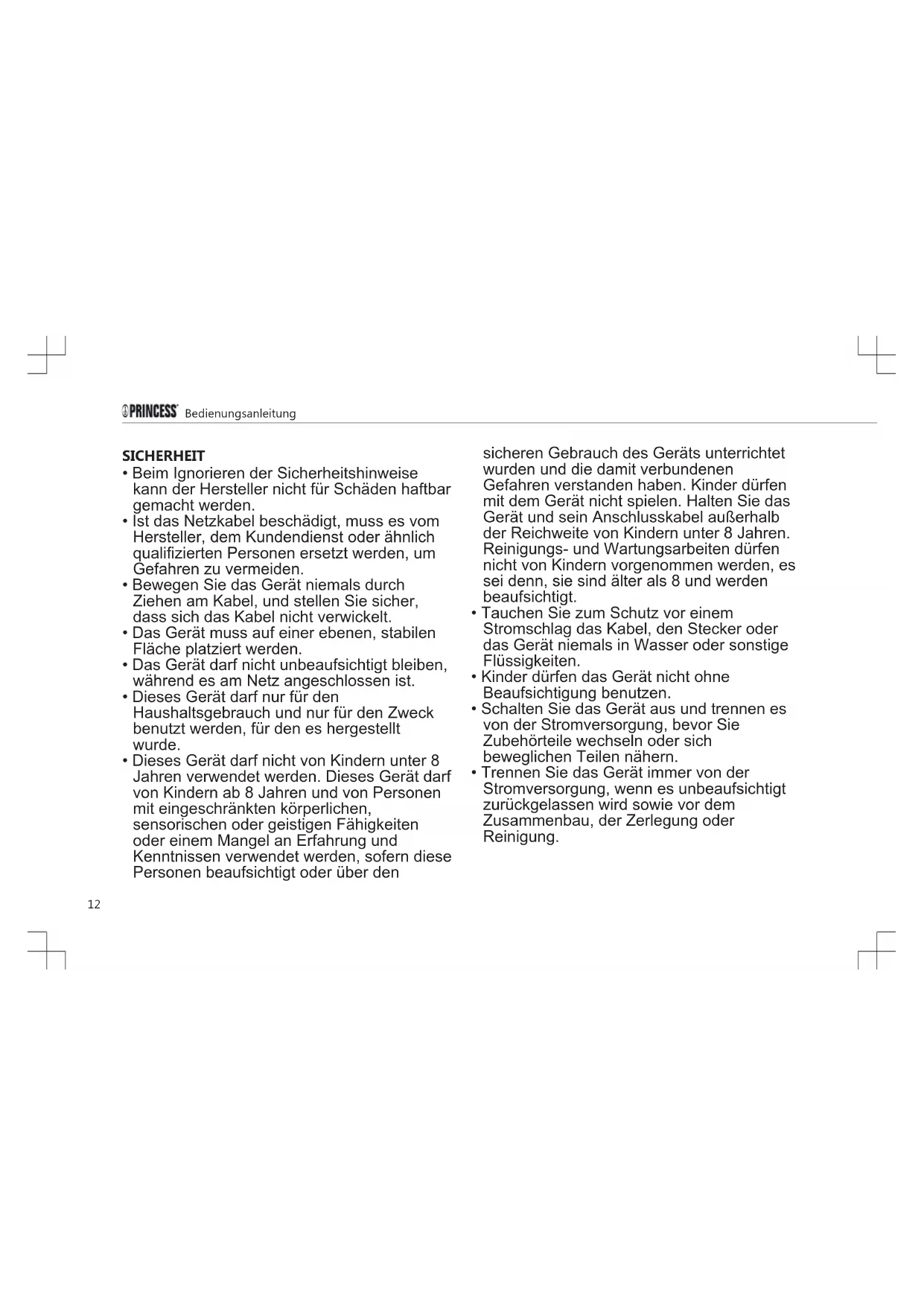 Finden Sie kostenlos die Bedienungsanleitung des Geräts 201977 PRINCESS als PDF.