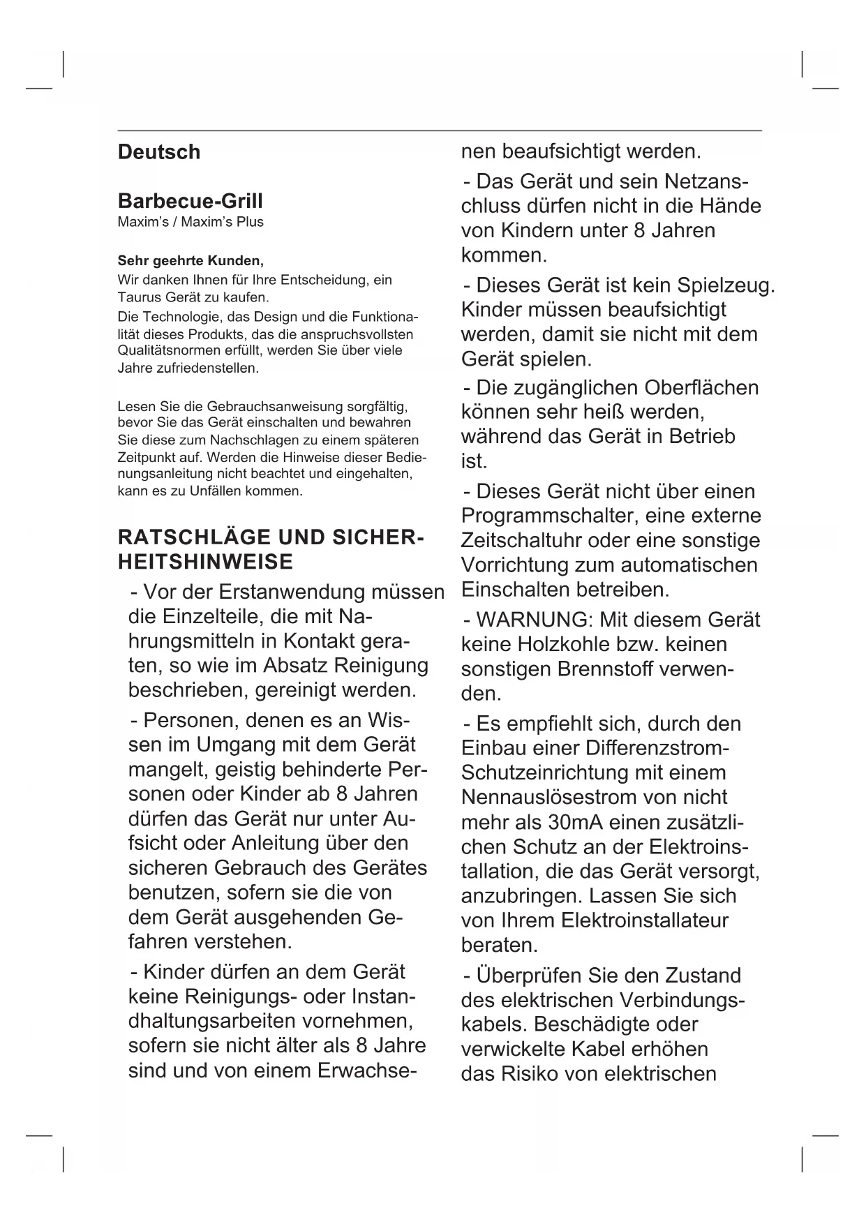 BEDIENUNGSANLEITUNG Maxim’s plus TAURUS