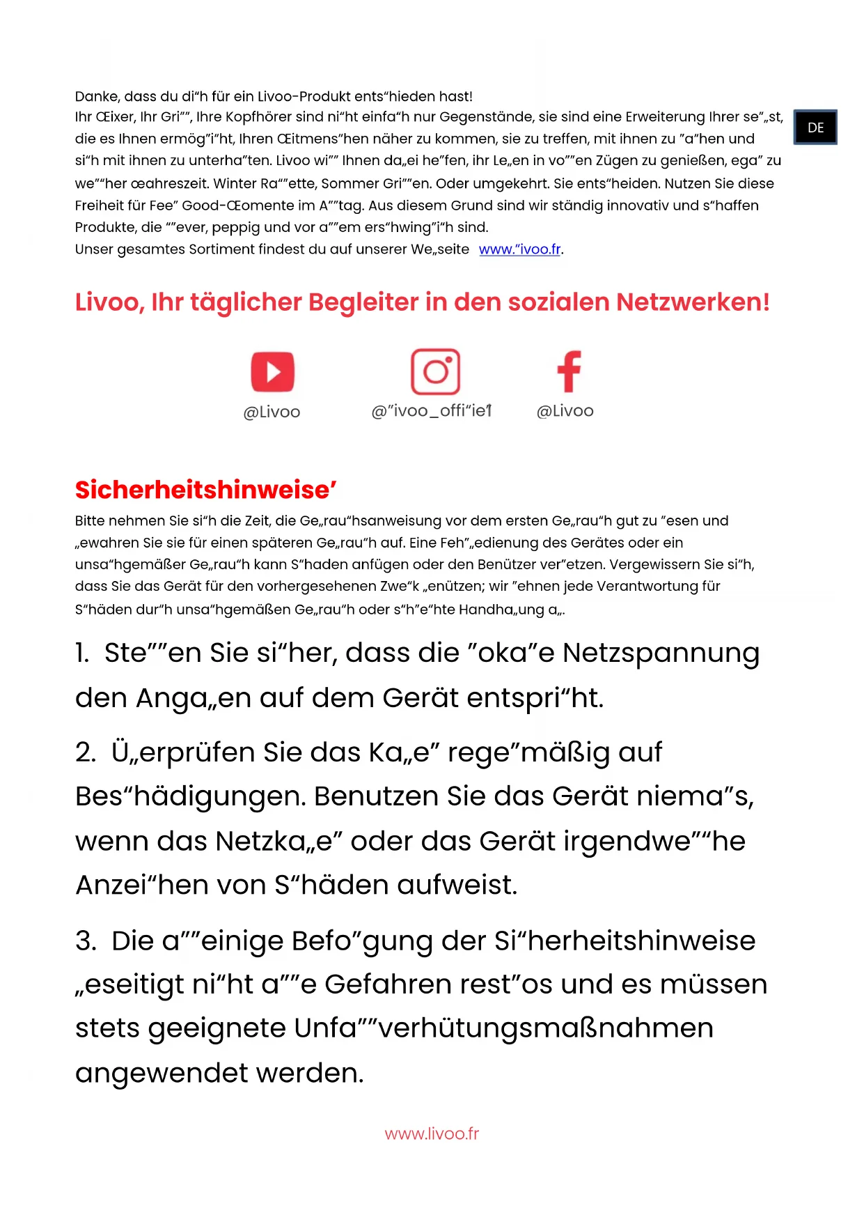 beseitigt nicht alle Gefahren restlos und es müssen stets geeignete Unfallverhütungsmaßnahmen angewendet werden. @livoo_officiel