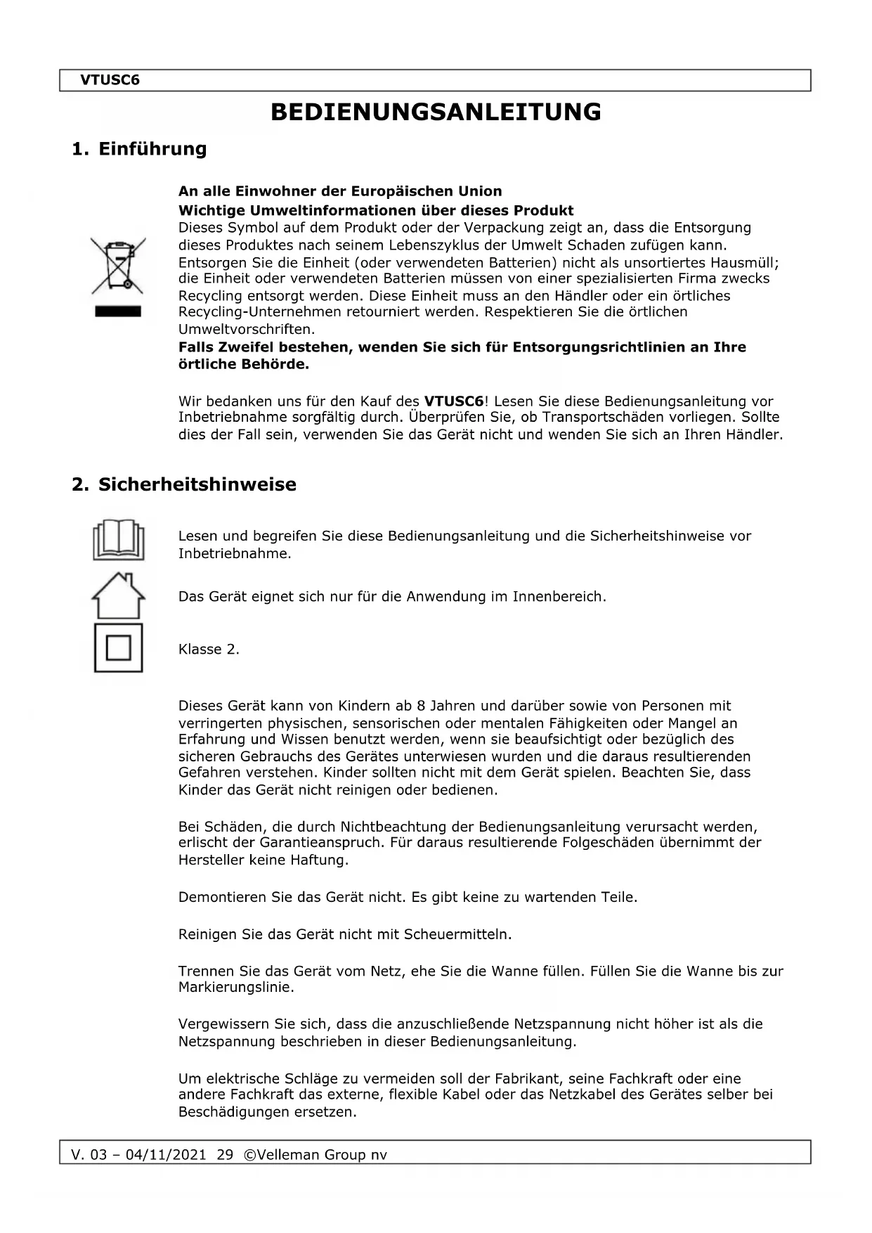 Bewahren Sie diese Bedienungsanleitung für künftige Einsichtnahme auf.VTUSC6