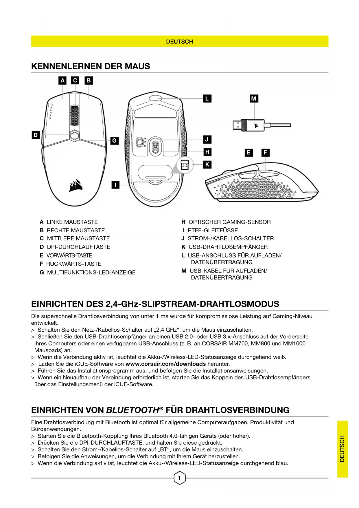 Katar Elite Wireless - Maus CORSAIR - Kostenlose Bedienungsanleitung