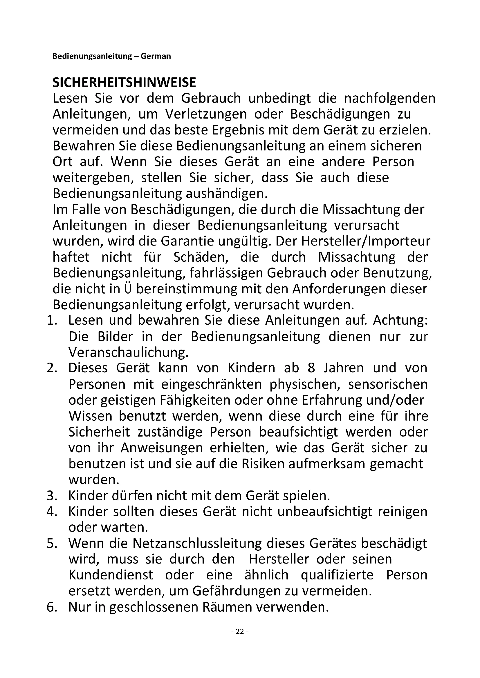6. Nur in geschlossenen Räumen verwenden.- 23 -