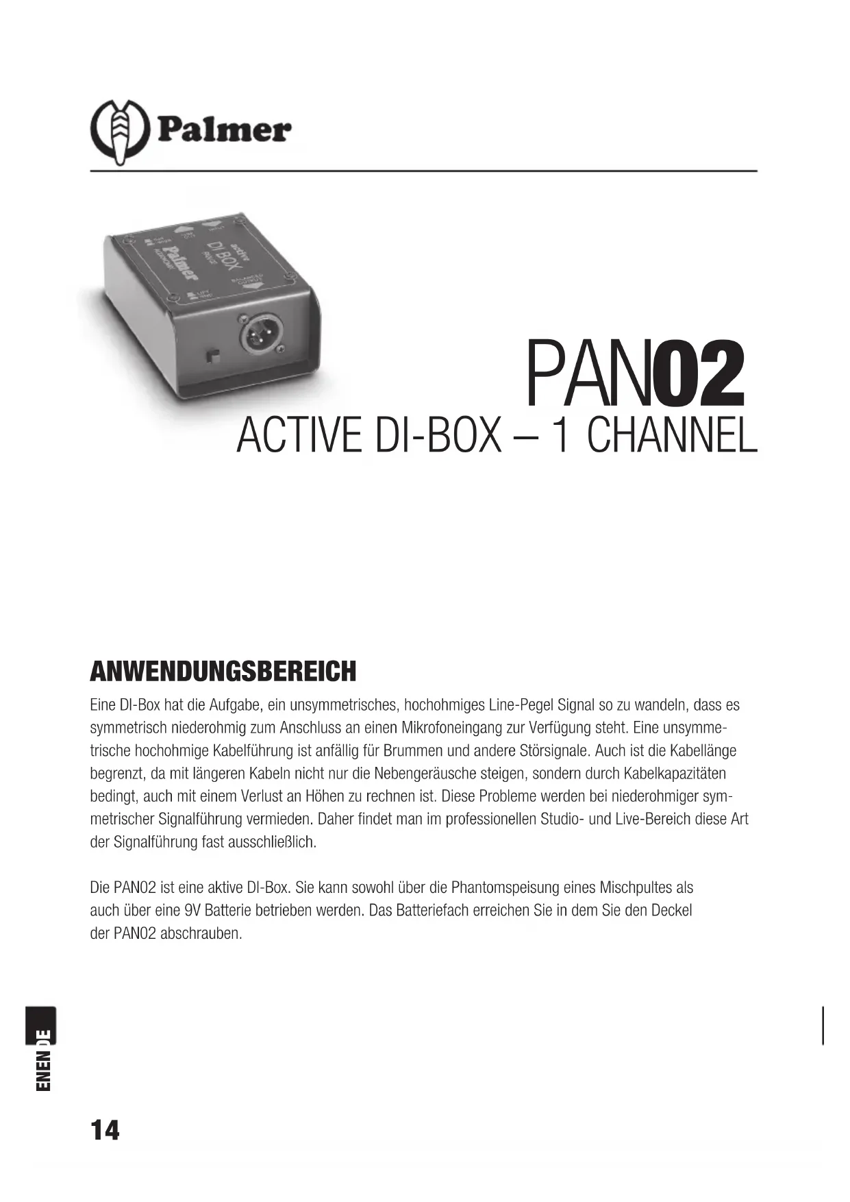 PAN 02 Active - Audioausrüstung Palmer - Kostenlose Bedienungsanleitung