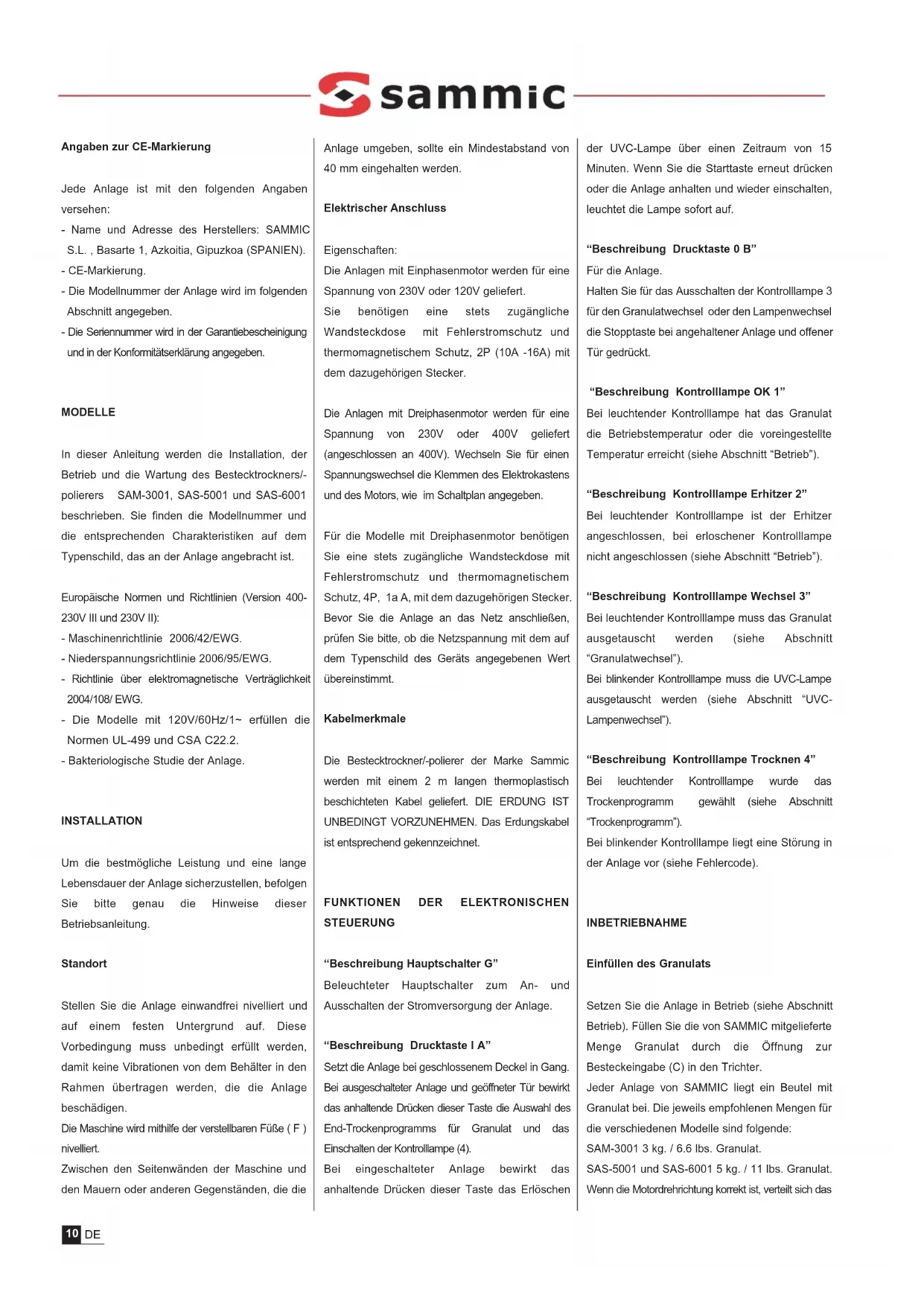 BEDIENUNGSANLEITUNG SAS6001 Sammic