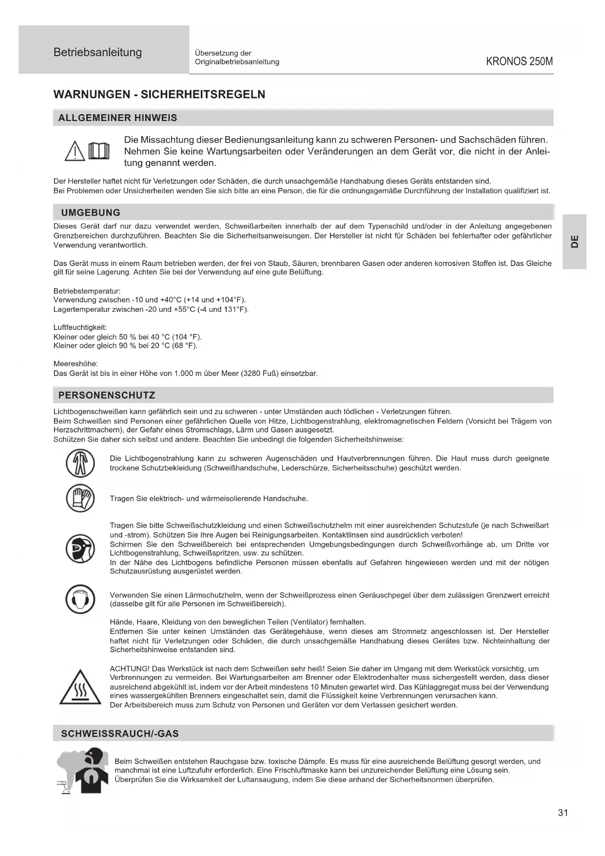 Betriebsanleitung KRONOS 250M Übersetzung der Originalbetriebsanleitung