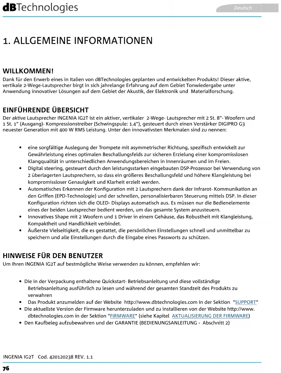 Finden Sie kostenlos die Bedienungsanleitung des Geräts Ingenia IG2T DB Technologies als PDF.