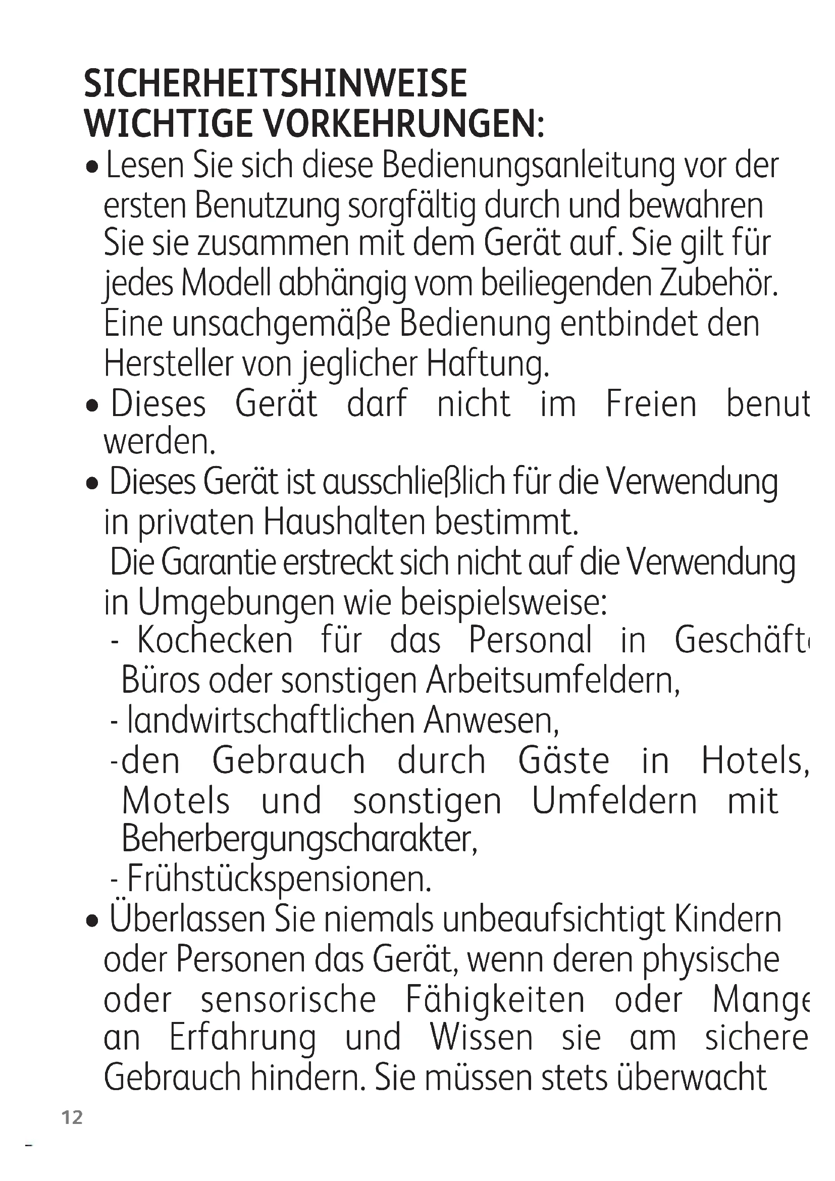 - DiesesGerätistausschließlichfürdieVerwendung inprivatenHaushaltenbestimmt. DieGarantieerstrecktsichnichtaufdieVerwendung inUmgebungenwiebeispielsweise: -Kochecken für das Personal in Geschäften, BürosodersonstigenArbeitsumfeldern, -landwirtschaftlichenAnwesen,