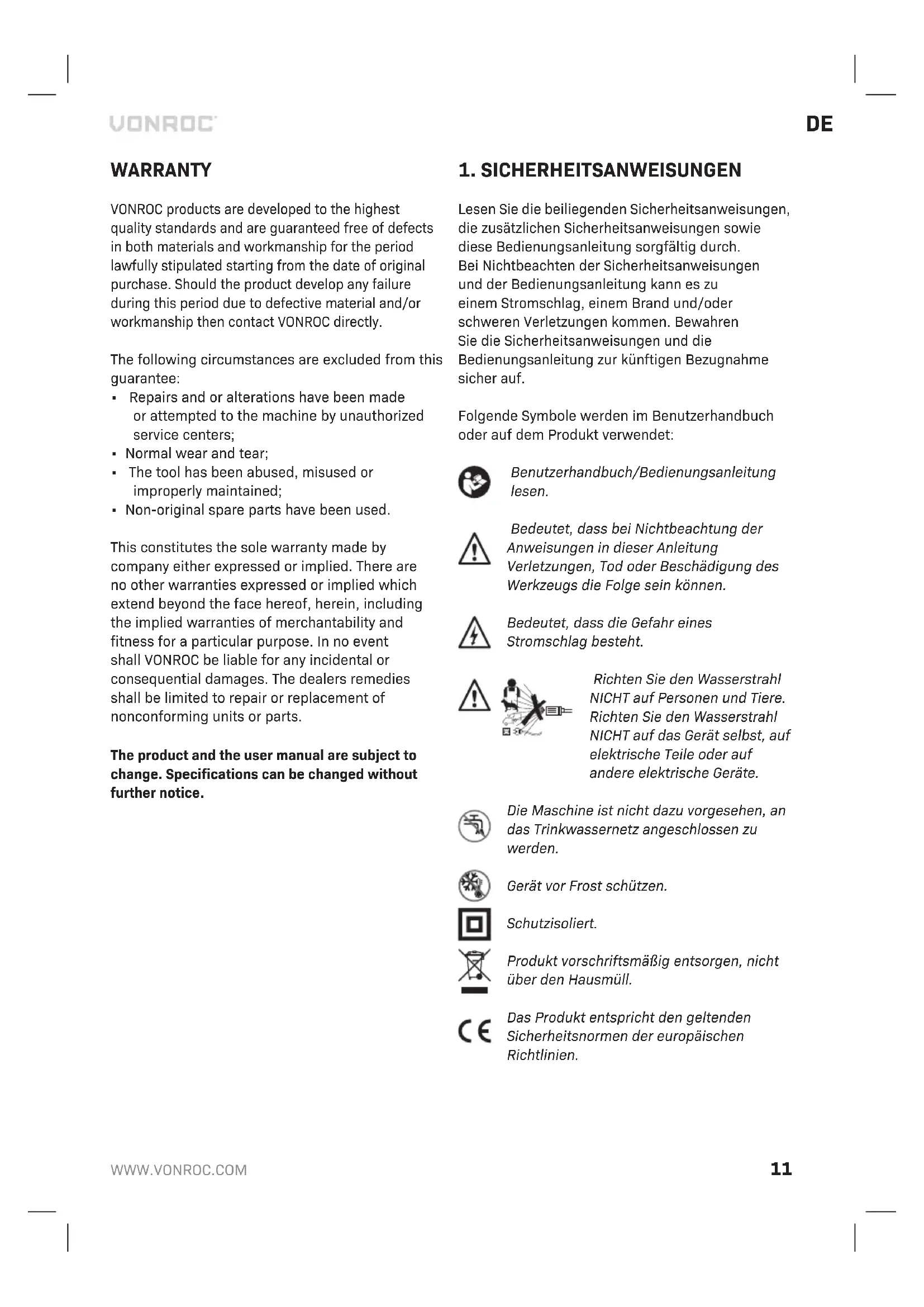 PW506AC - Hochdruckreiniger Vonroc - Kostenlose Bedienungsanleitung