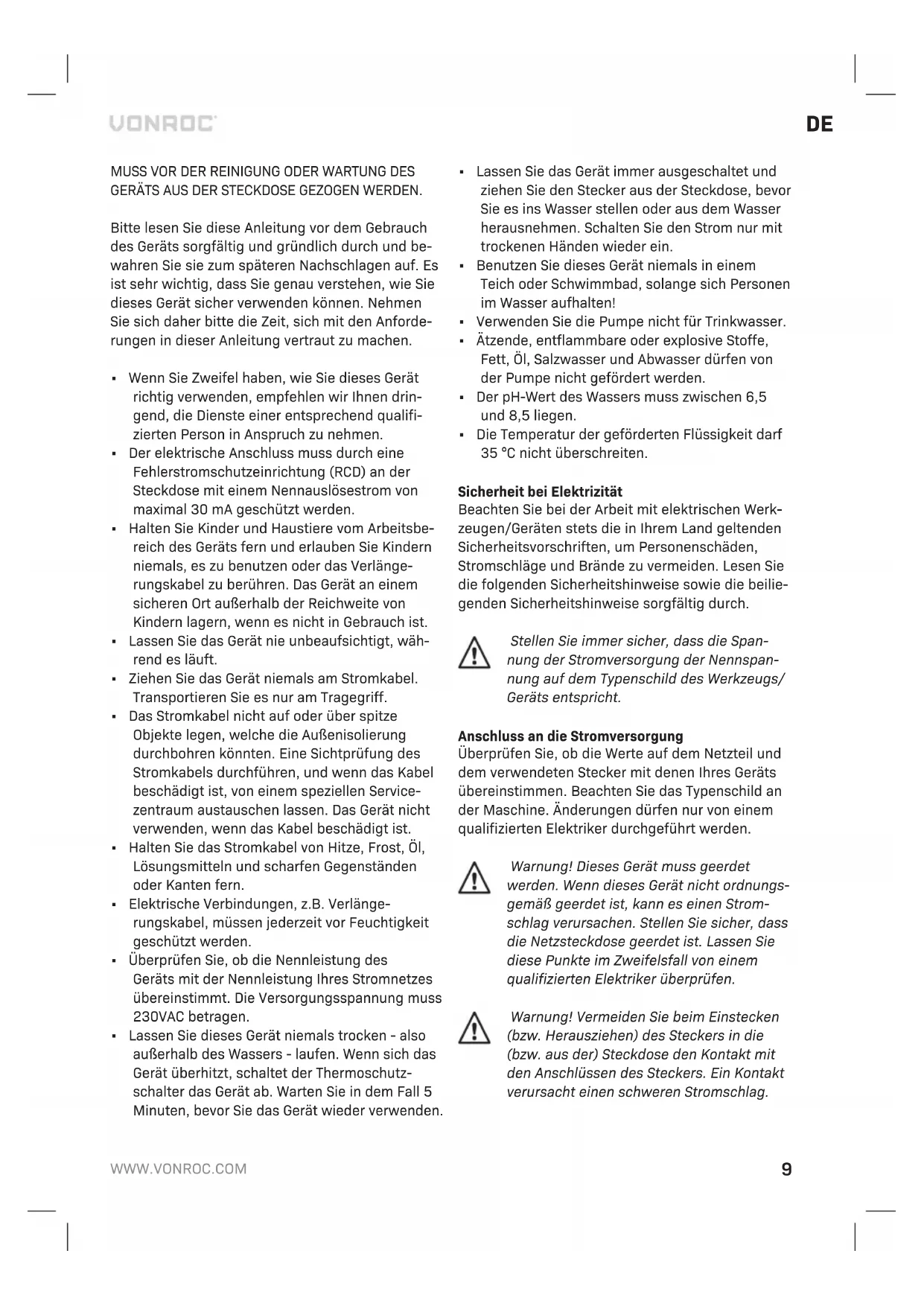 SP505AC - Pumpe Vonroc - Kostenlose Bedienungsanleitung