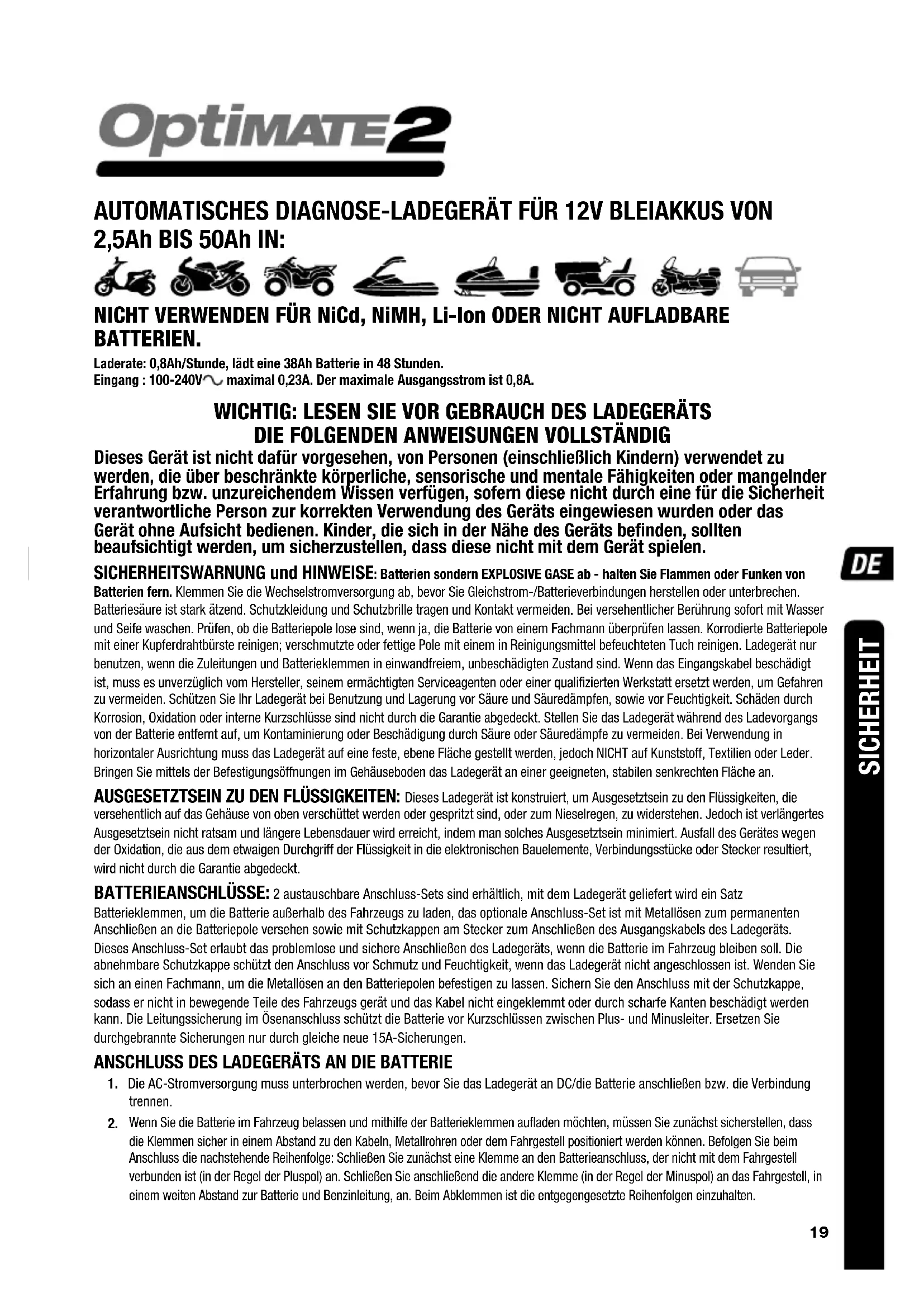 Finden Sie kostenlos die Bedienungsanleitung des Geräts Optimate 2 Tecmate als PDF.