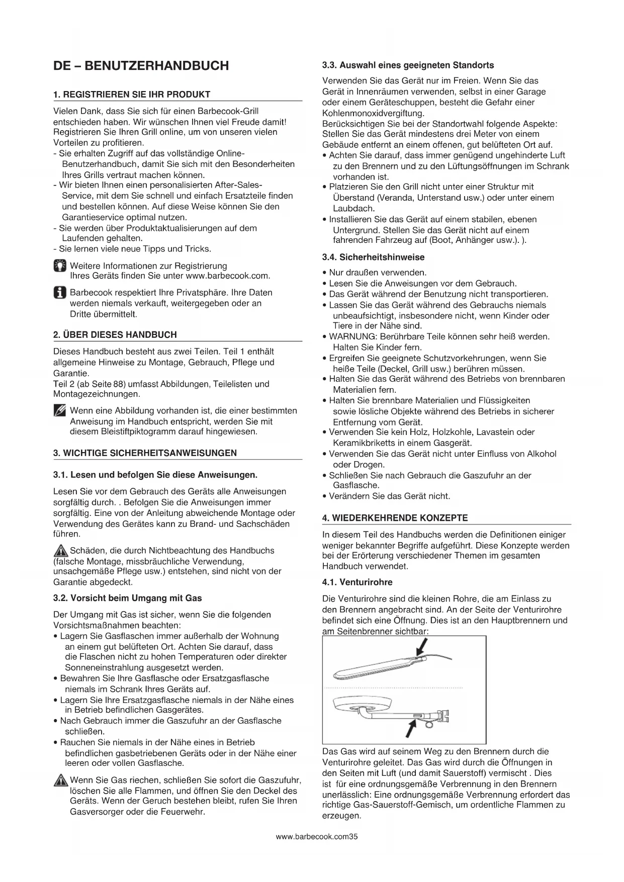 Vielen Dank, dass Sie sich für einen Barbecook-Grill entschieden haben. Wir wünschen Ihnen viel Freude damit! Registrieren Sie Ihren Grill online, um von unseren vielen Vorteilen zu protieren. - Sie erhalten Zugriff auf das vollständige Online- Benutzerhandbuch , damit Sie sich mit den Besonderheiten Ihres Grills vertraut machen können. - Wir bieten Ihnen einen personalisierten After-Sales- Service, mit dem Sie schnell und einfach Ersatzteile nden und bestellen können. Auf diese Weise können Sie den Garantieservice optimal nutzen. - Sie werden über Produktaktualisierungen auf dem Laufenden gehalten. - Sie lernen viele neue Tipps und Tricks. Weitere Informationen zur Registrierung Ihres Geräts nden Sie unter www.barbecook.com. Barbecook respektiert Ihre Privatsphäre. Ihre Daten werden niemals verkauft, weitergegeben oder an Dritte übermittelt.