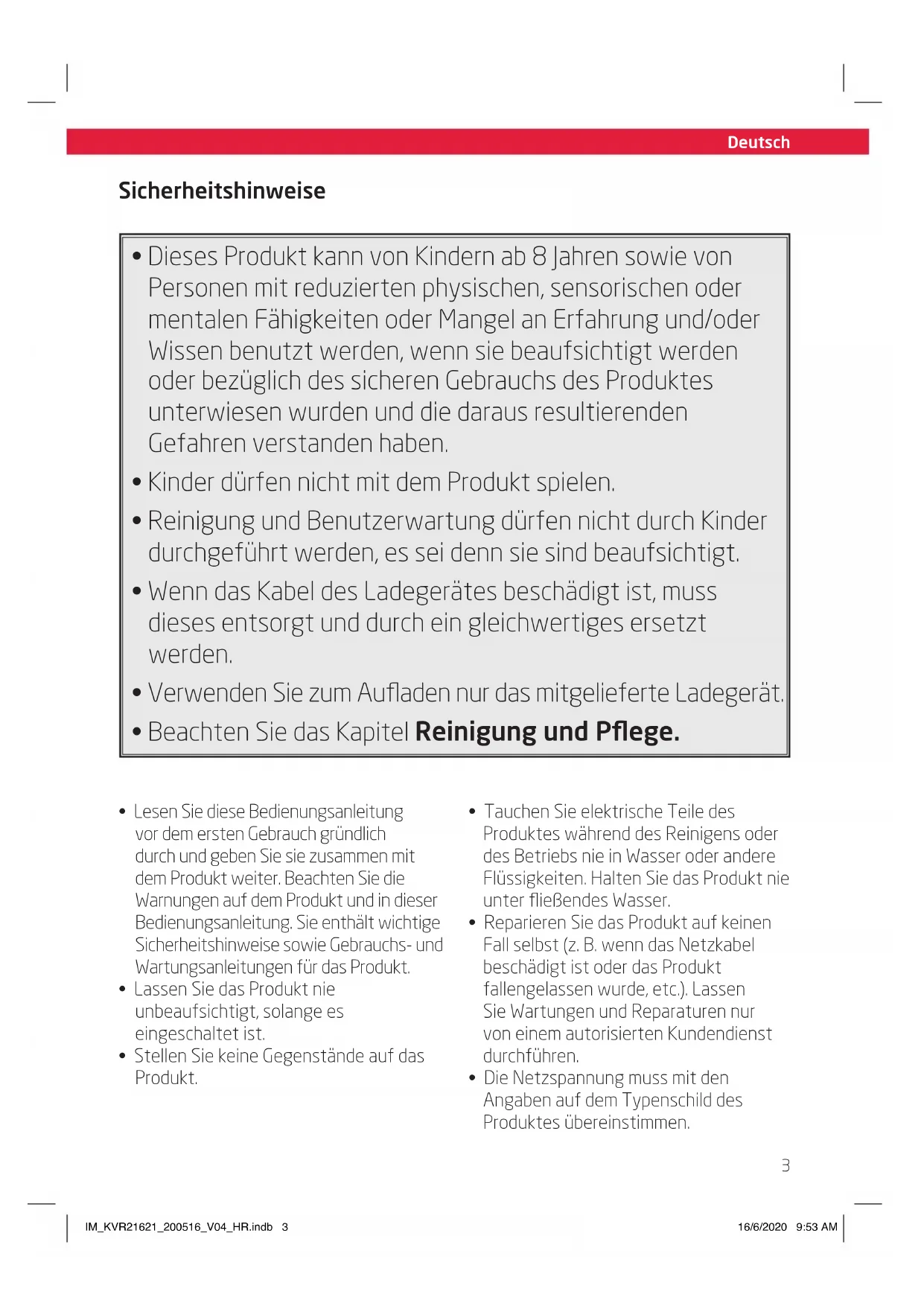 - Die Netzspannung muss mit den Angaben auf dem Typenschild des Produktes übereinstimmen. IM_KVR21621_200516_V04_HR.indb 3IM_KVR21621_200516_V04_HR.indb 3 16/6/2020 9:53 AM16/6/2020 9:53 AMDeutsch