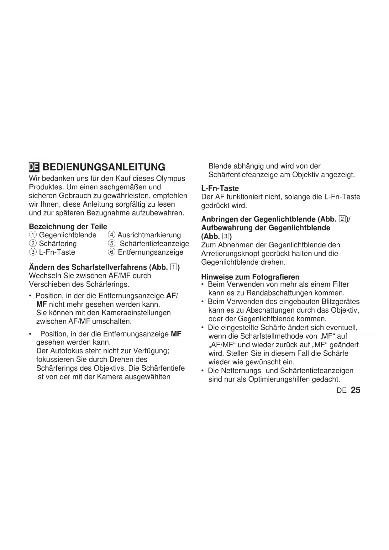 BEDIENUNGSANLEITUNG ED 25mm F1.2 PRO OLYMPUS