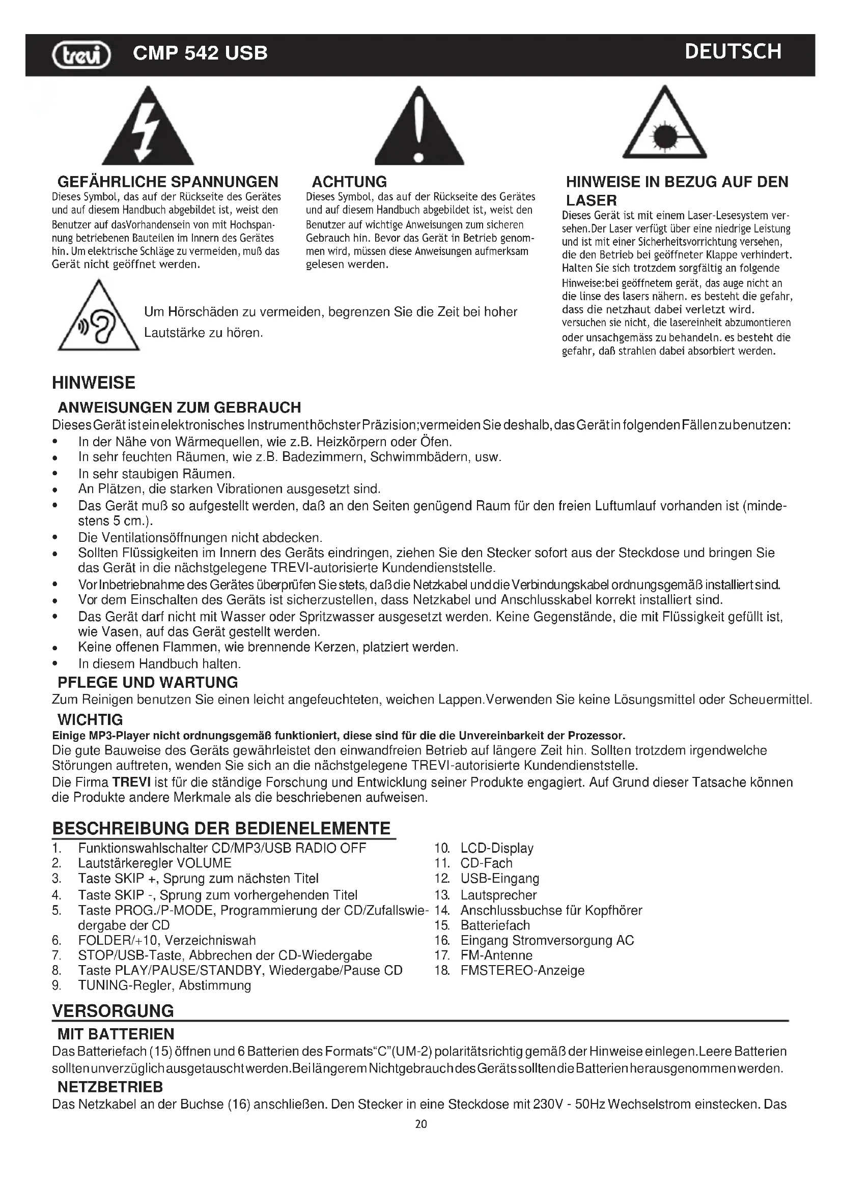 BEDIENUNGSANLEITUNG CMP 542 USB Trevi