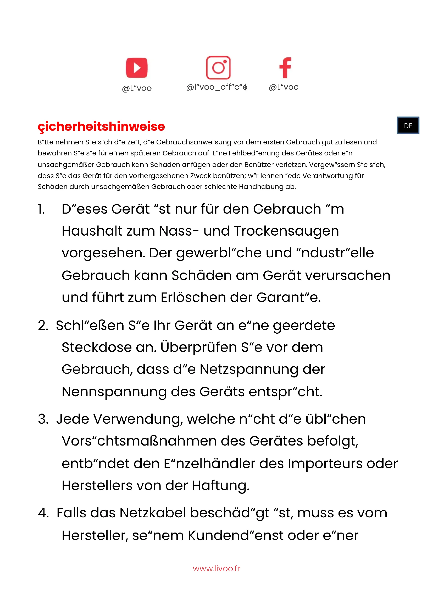 Hersteller, seinem Kundendienst oder einer @livoo_officiel