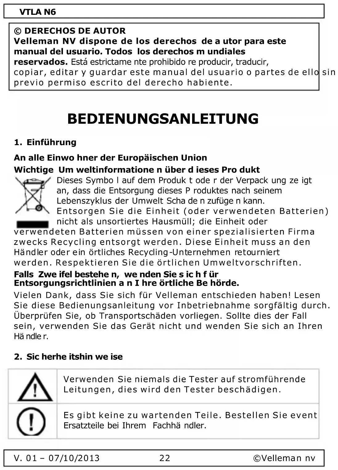 V. 01 – 07/10/2013 23 ©Velleman nv