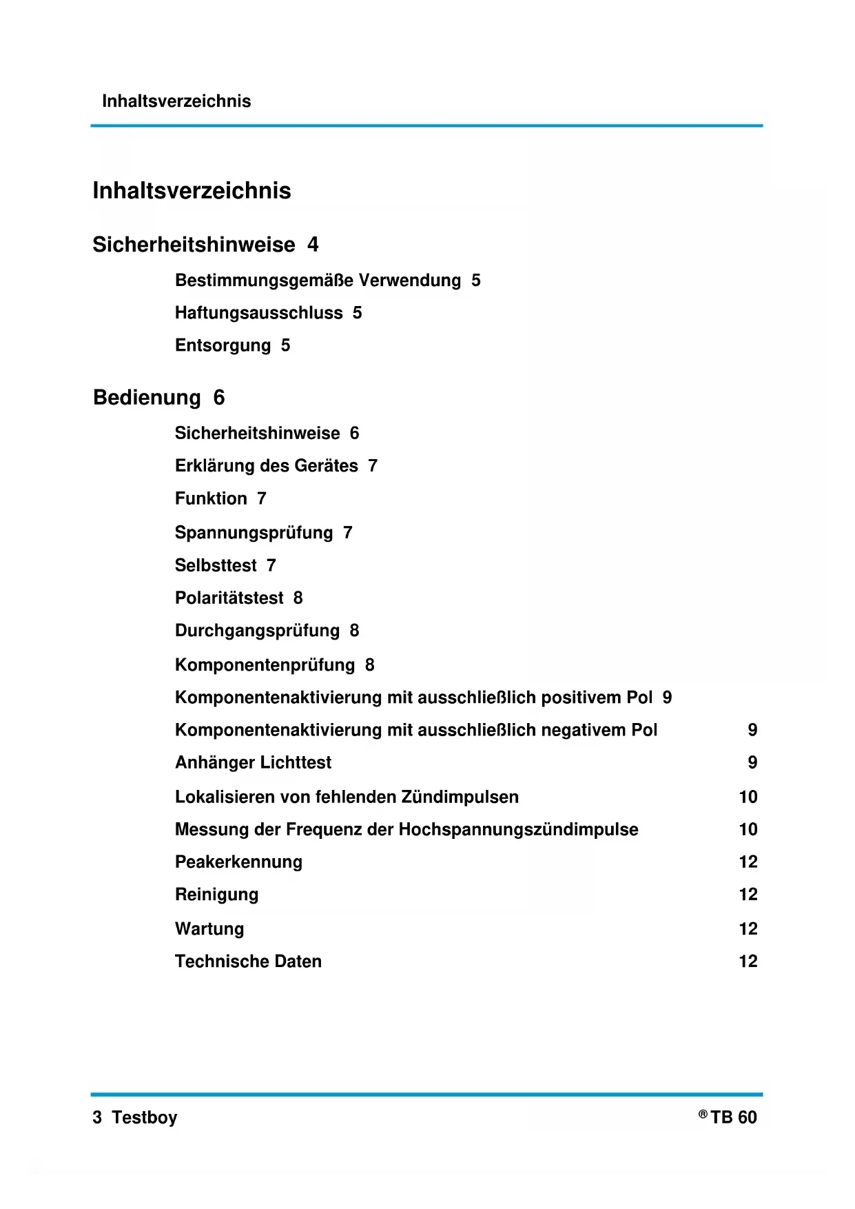TB 60 Version 1.4Inhaltsverzeichnis Testboy