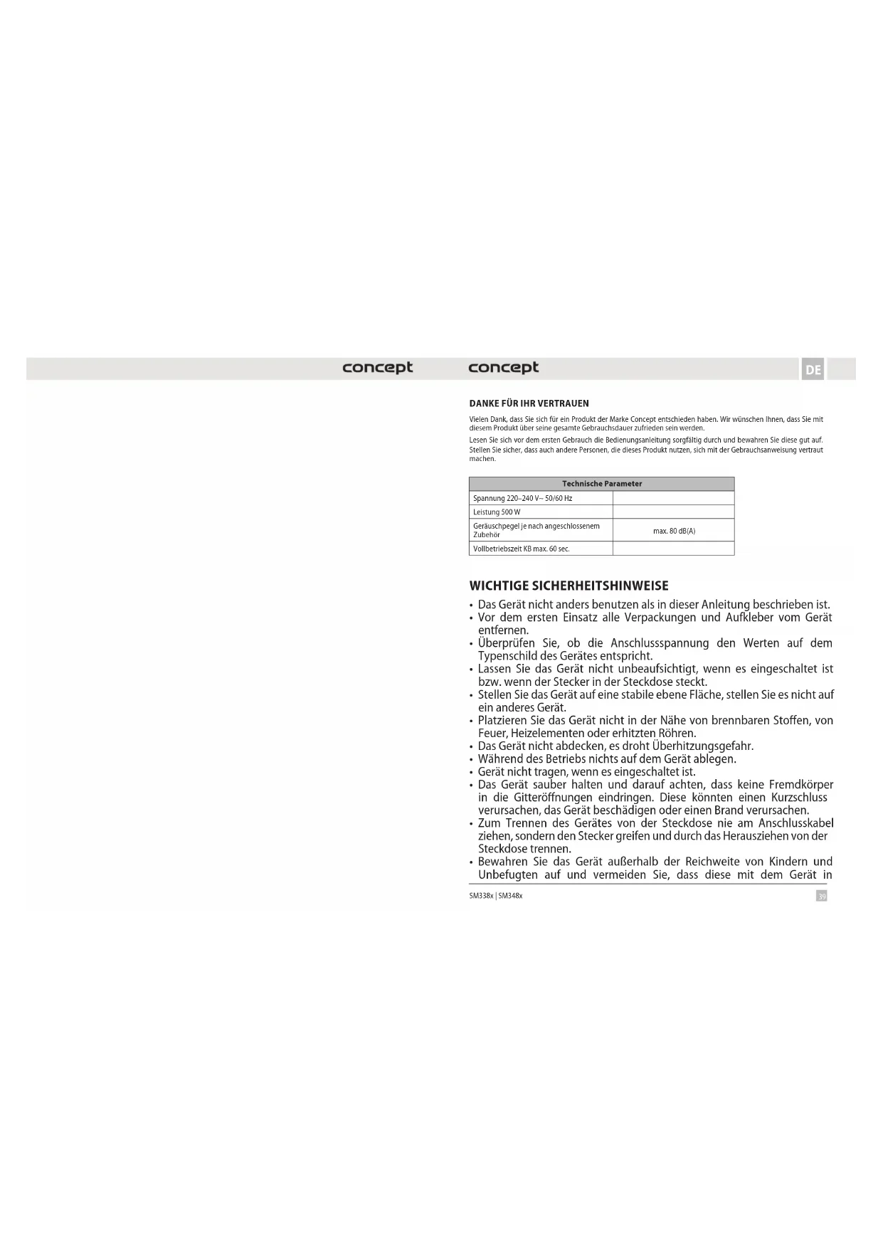 BEDIENUNGSANLEITUNG SM3483 Concept