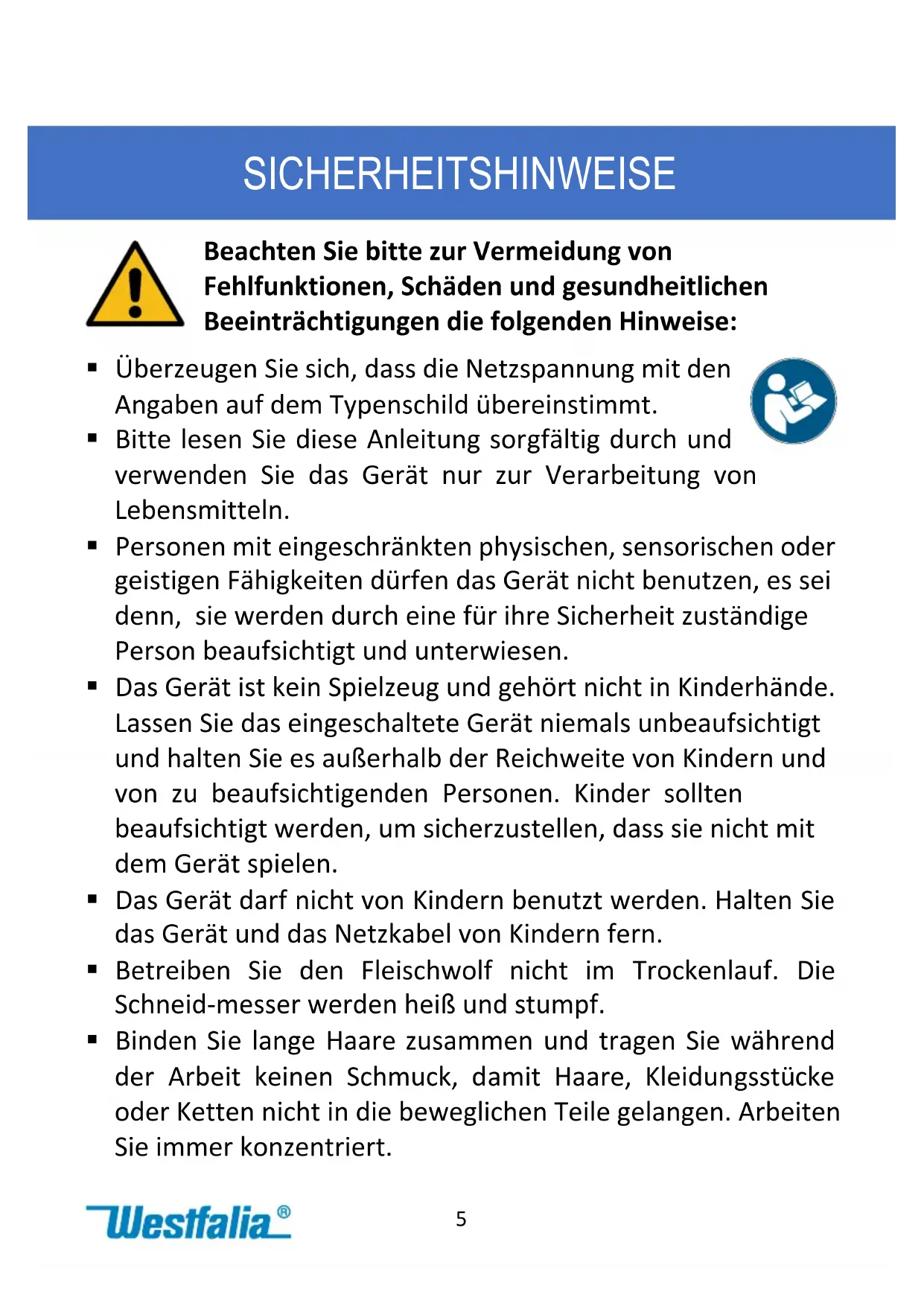 860274 - Fleischwolf Westfalia - Kostenlose Bedienungsanleitung