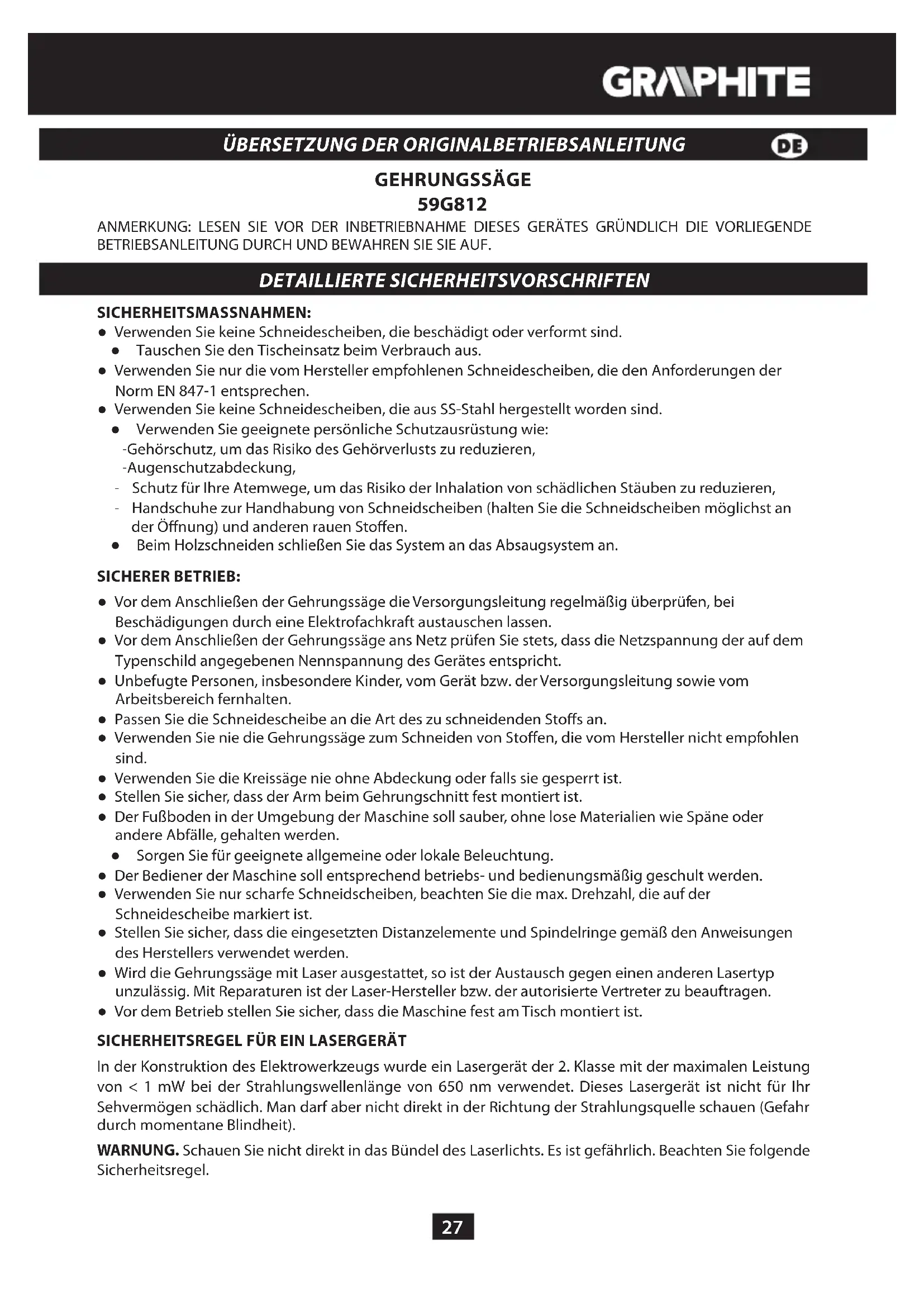 59G812 - Säge Graphite - Kostenlose Bedienungsanleitung