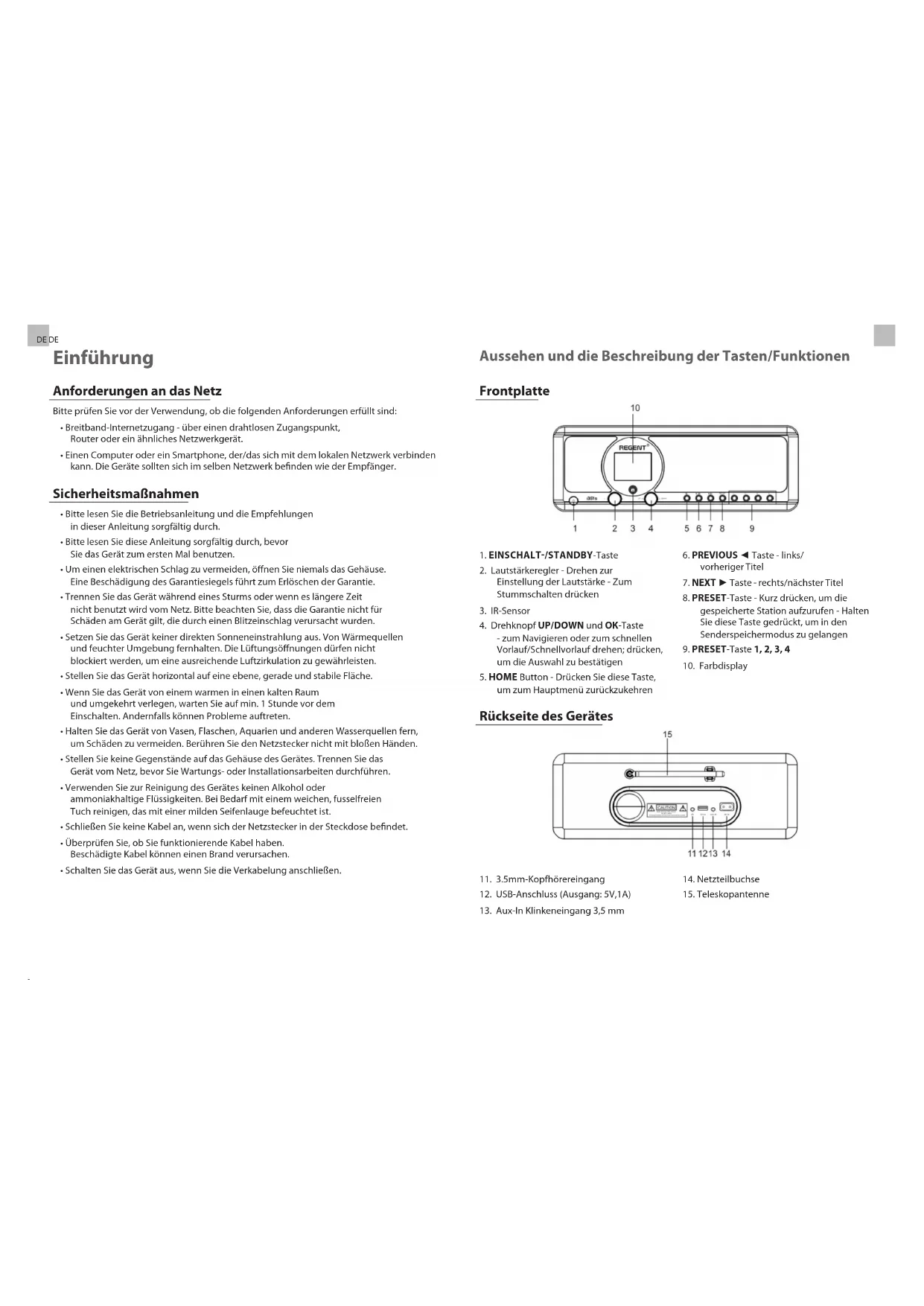 Rückseite des Gerätes DE DE1. POWER ON/STANDBY Taste - ein/aus