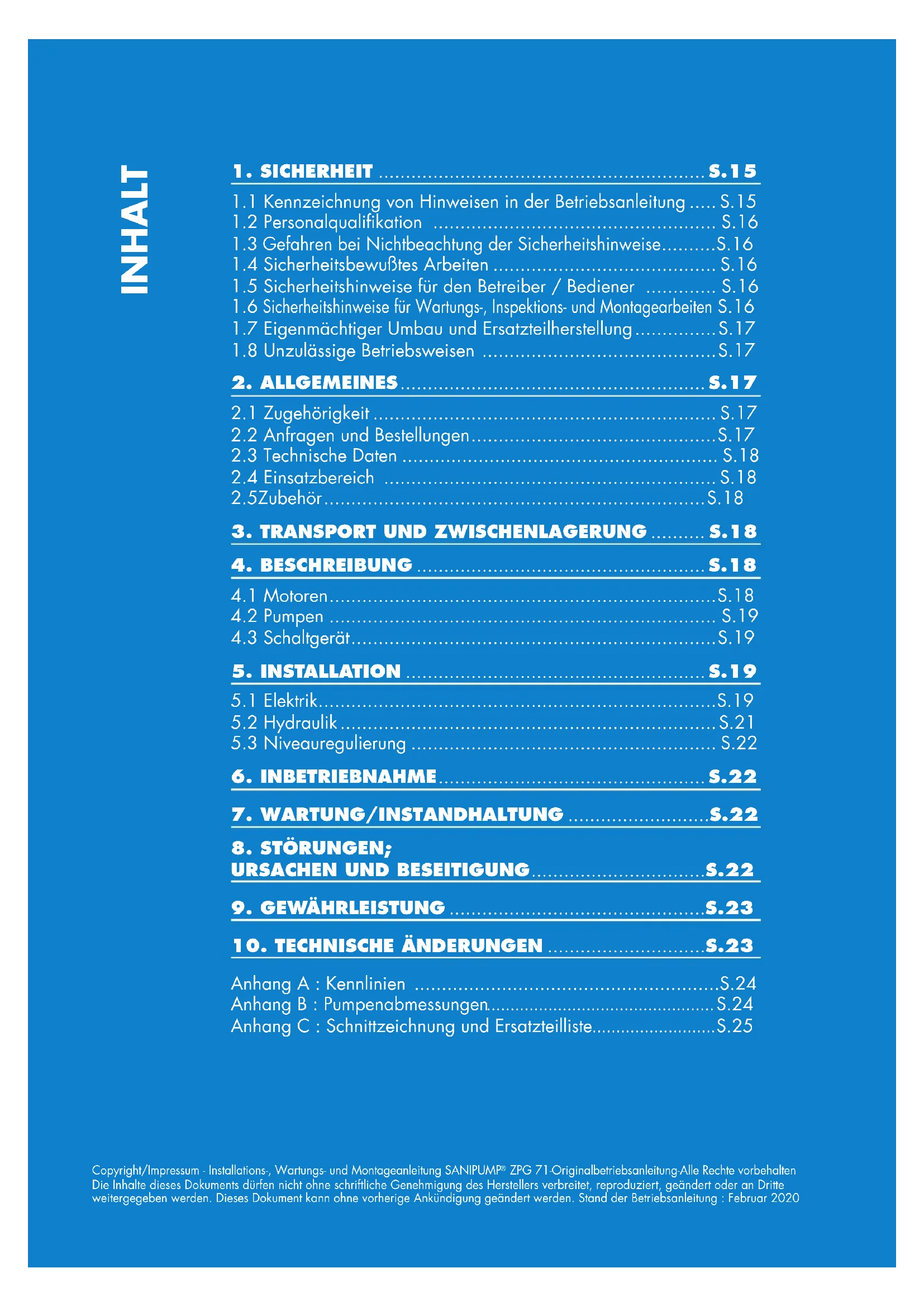 ZPG 71-Originalbetriebsanleitung-Alle Rechte vorbehalten Die Inhalte dieses Dokuments dürfen nicht ohne schriftliche Genehmigung des Herstellers verbreitet, reproduziert, geändert oder an Dritte weitergegeben werden. Dieses Dokument kann ohne vorherige Ankündigung geändert werden. Stand der Betriebsanleitung : Februar 2020