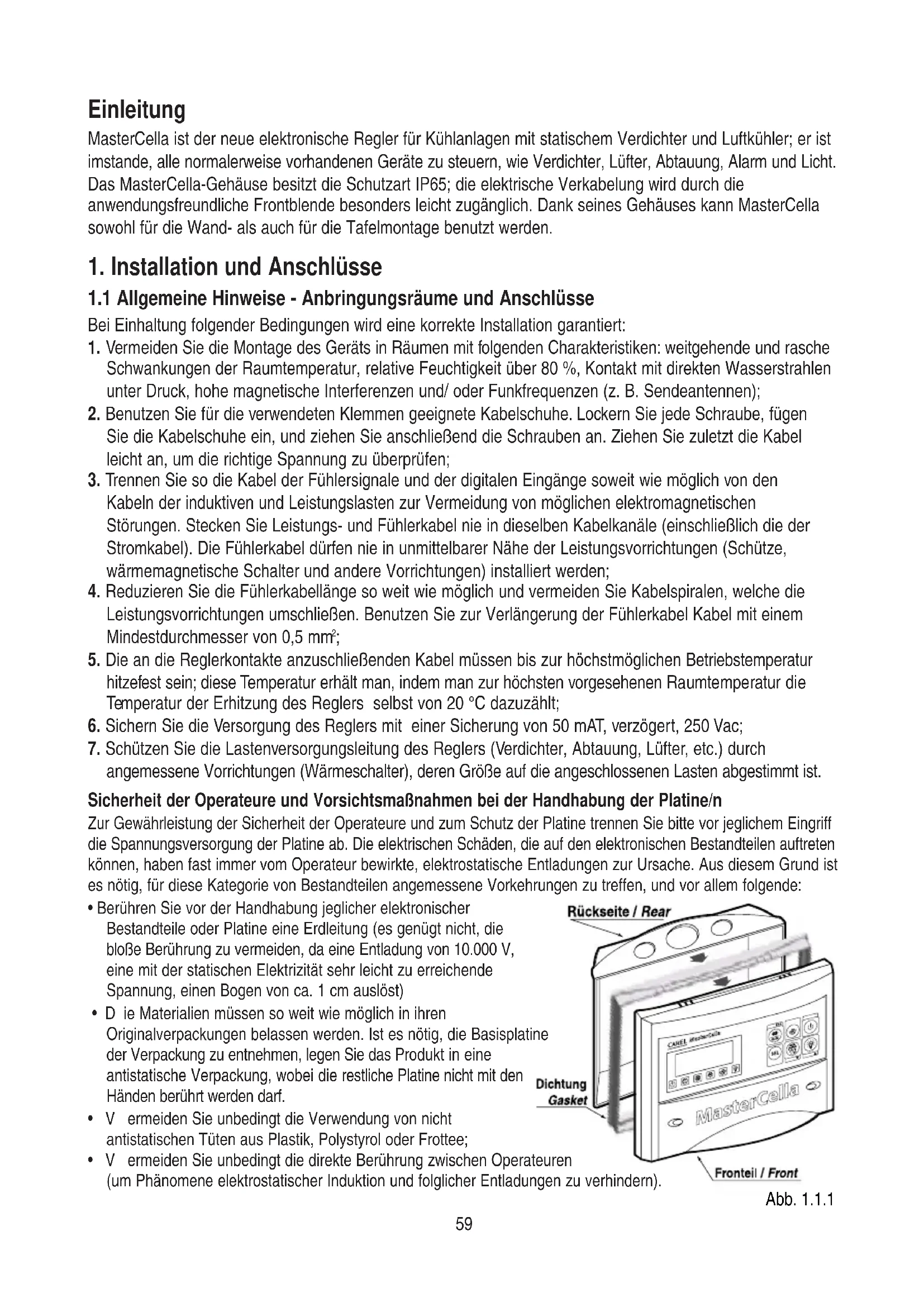 1. Installation und Anschlüsse 59