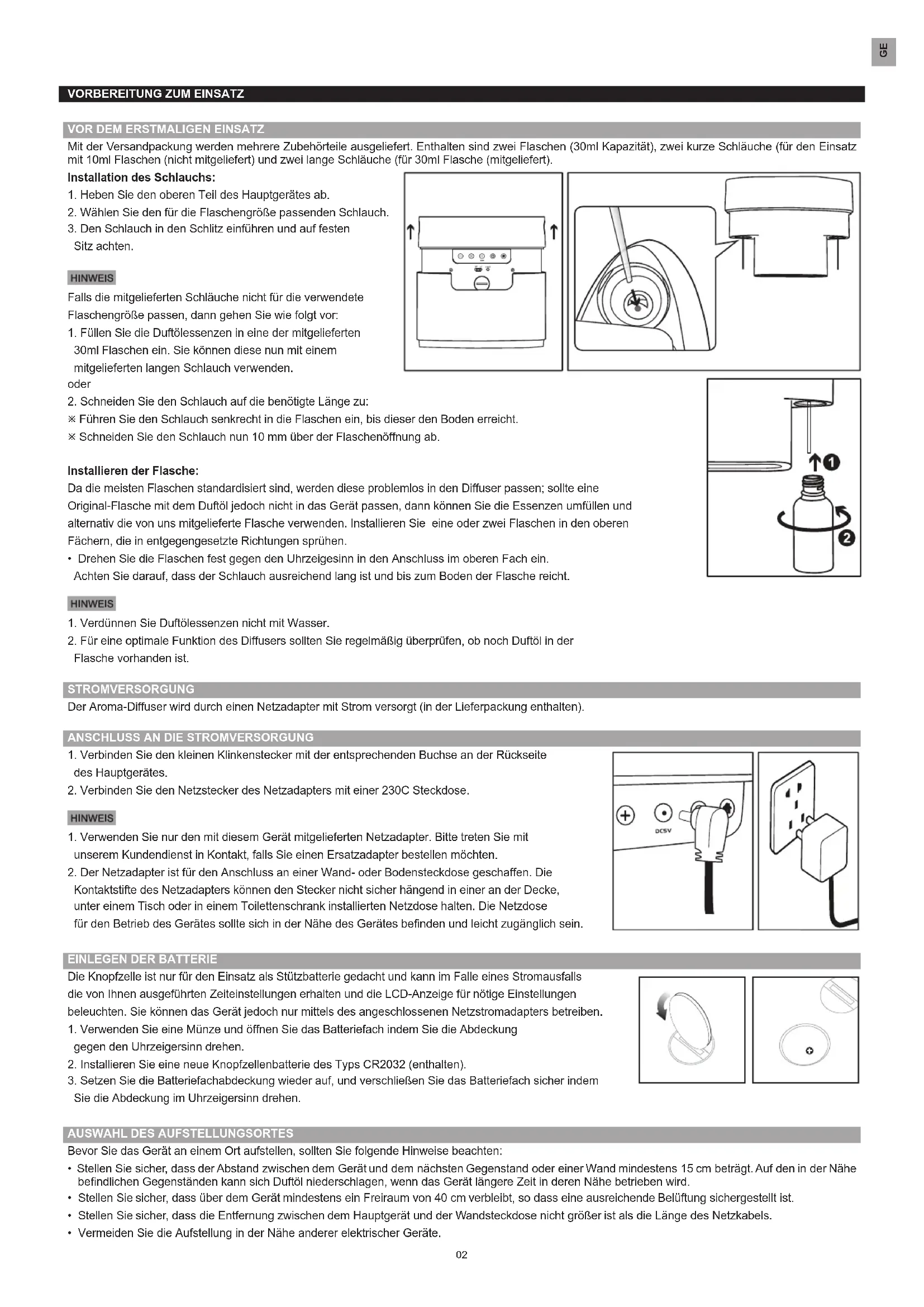 Flasche vorhanden ist. STROMVERSORGUNG Der Aroma-Diffuser wird durch einen Netzadapter mit Strom versorgt (in der Lieferpackung enthalten).