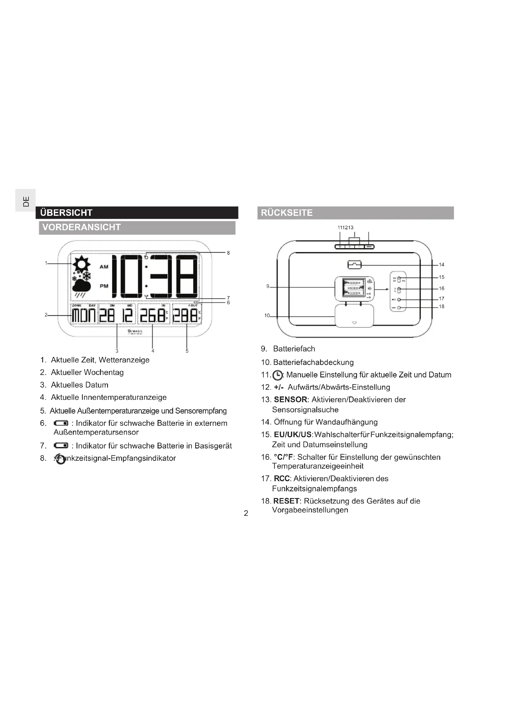 15. EU/UK/US: Wahlschalter für Funkzeitsignalempfang;