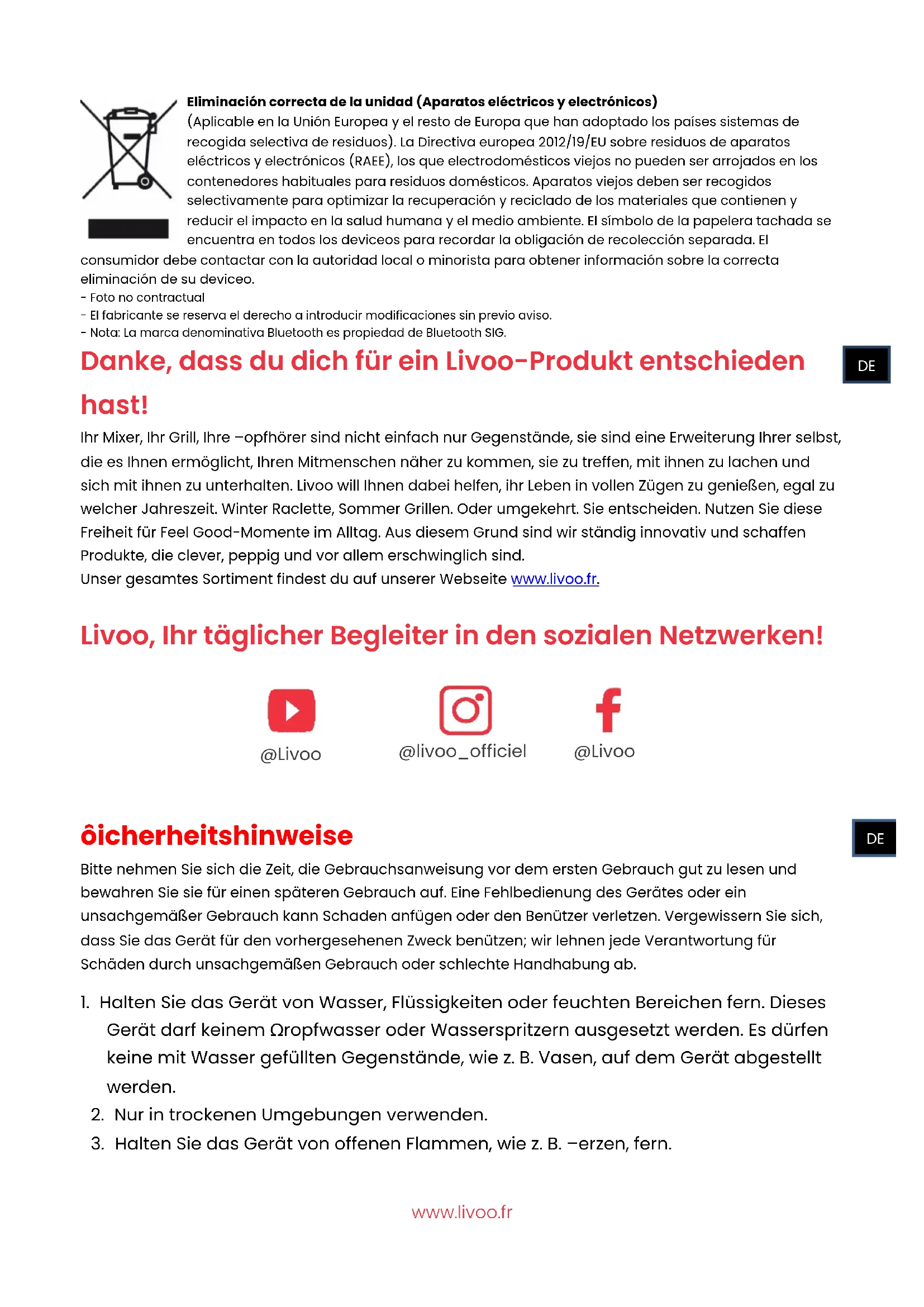 Halten Sie das Gerät von offenen Flammen, wie z. B. Kerzen, fern. @livoo_officiel
