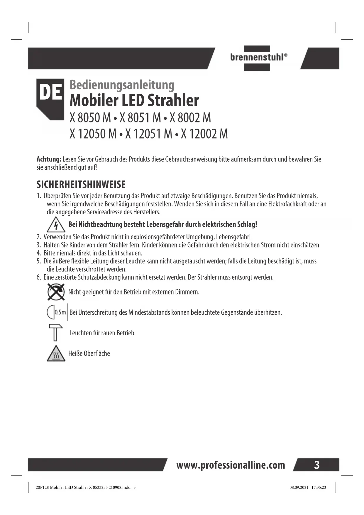 Finden Sie kostenlos die Bedienungsanleitung des Geräts professionalLINE X 12050 M BRENNENSTUHL als PDF.