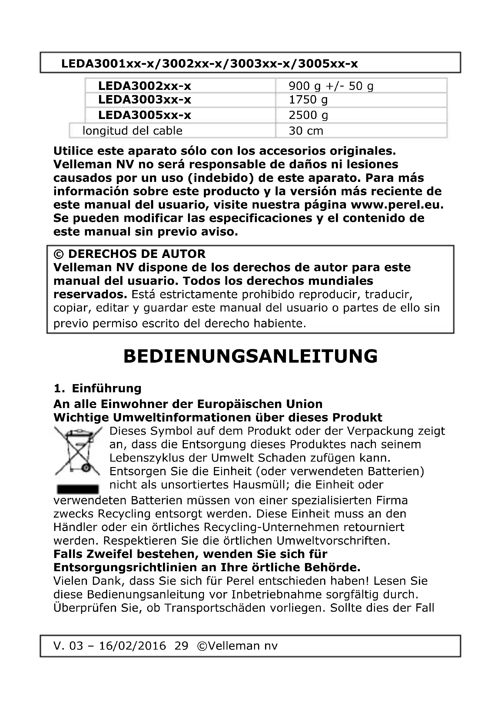 Siehe Velleman® Service- und Qualitätsgarantie am Ende dieser Bedienungsanleitung.LEDA3001xx-x/3002xx-x/3003xx-x/3005xx-x