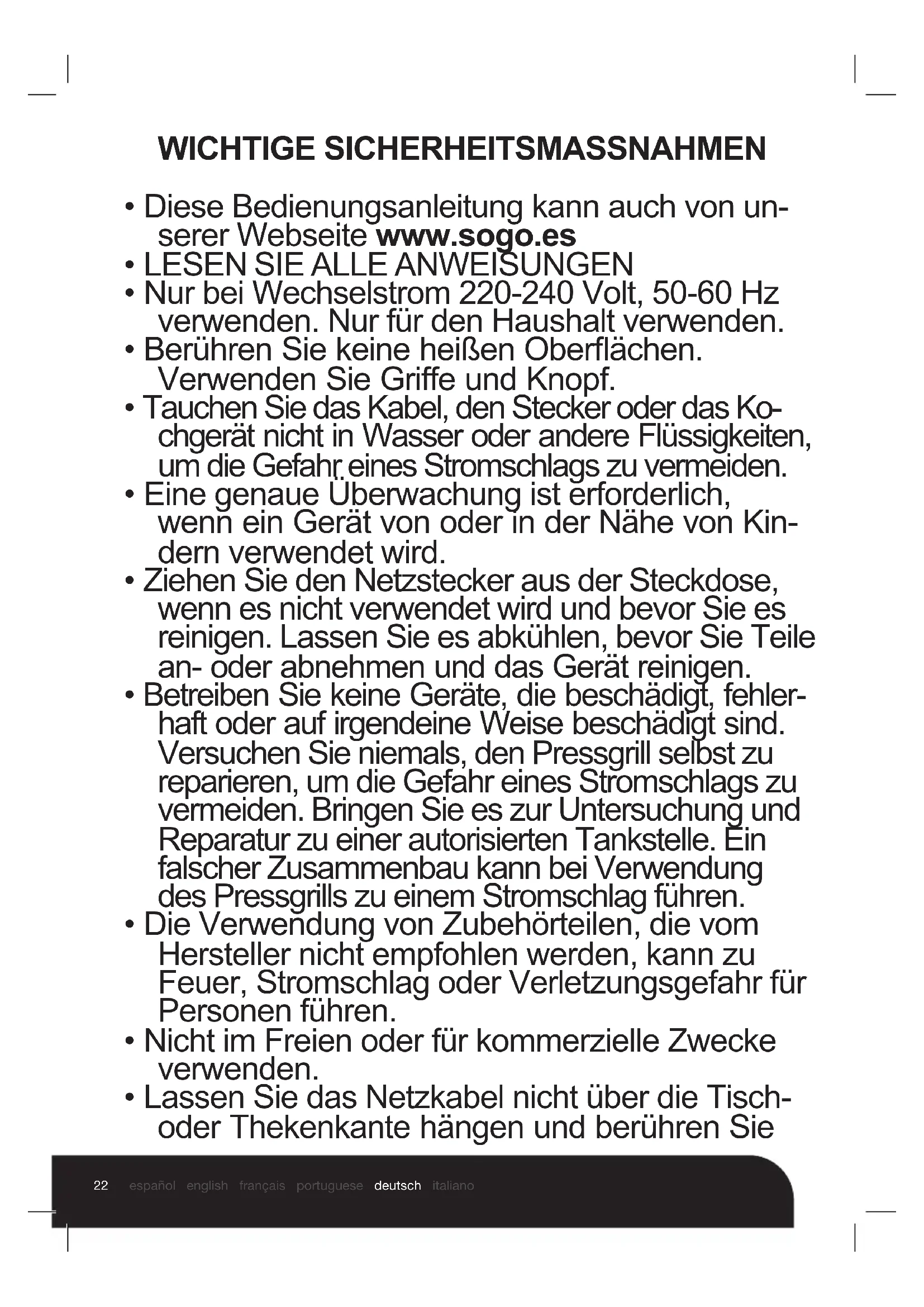 - Diese Bedienungsanleitung kann auch von un- serer Webseite www.sogo.es