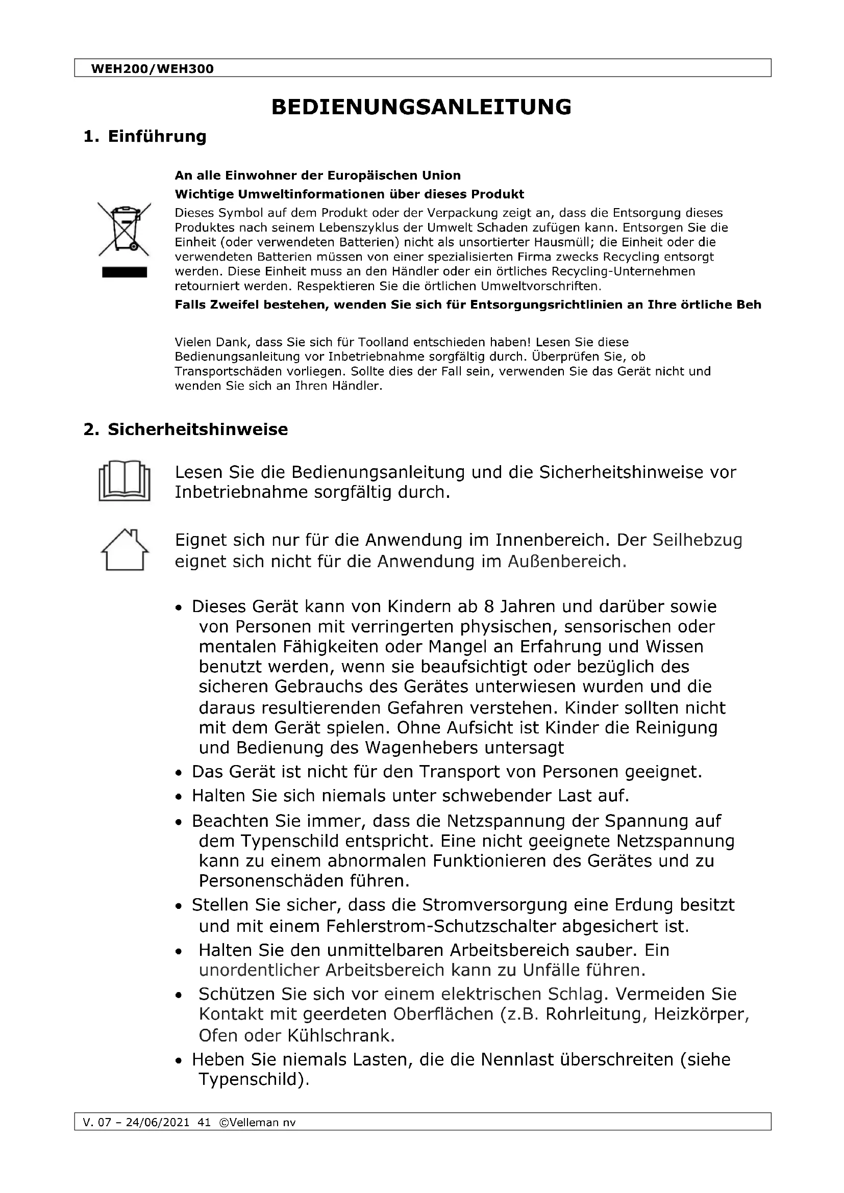 BEDIENUNGSANLEITUNG WEH200 Toolland
