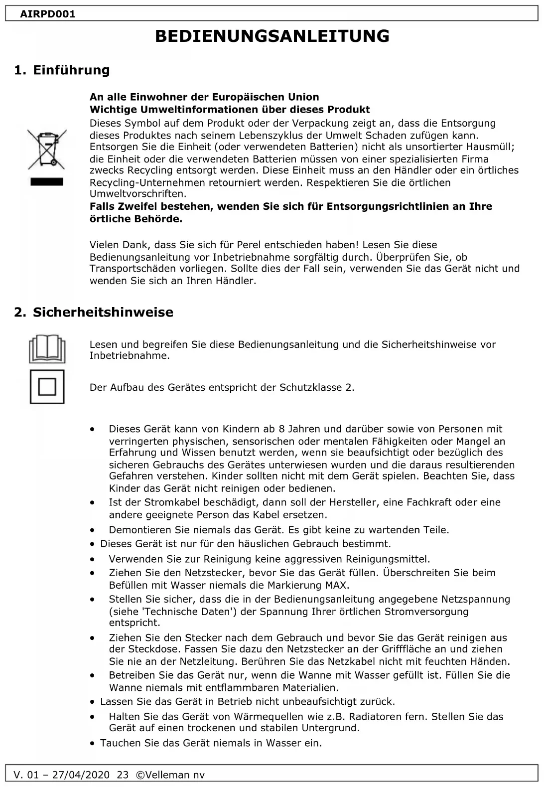 BEDIENUNGSANLEITUNG AIRPD001 Perel