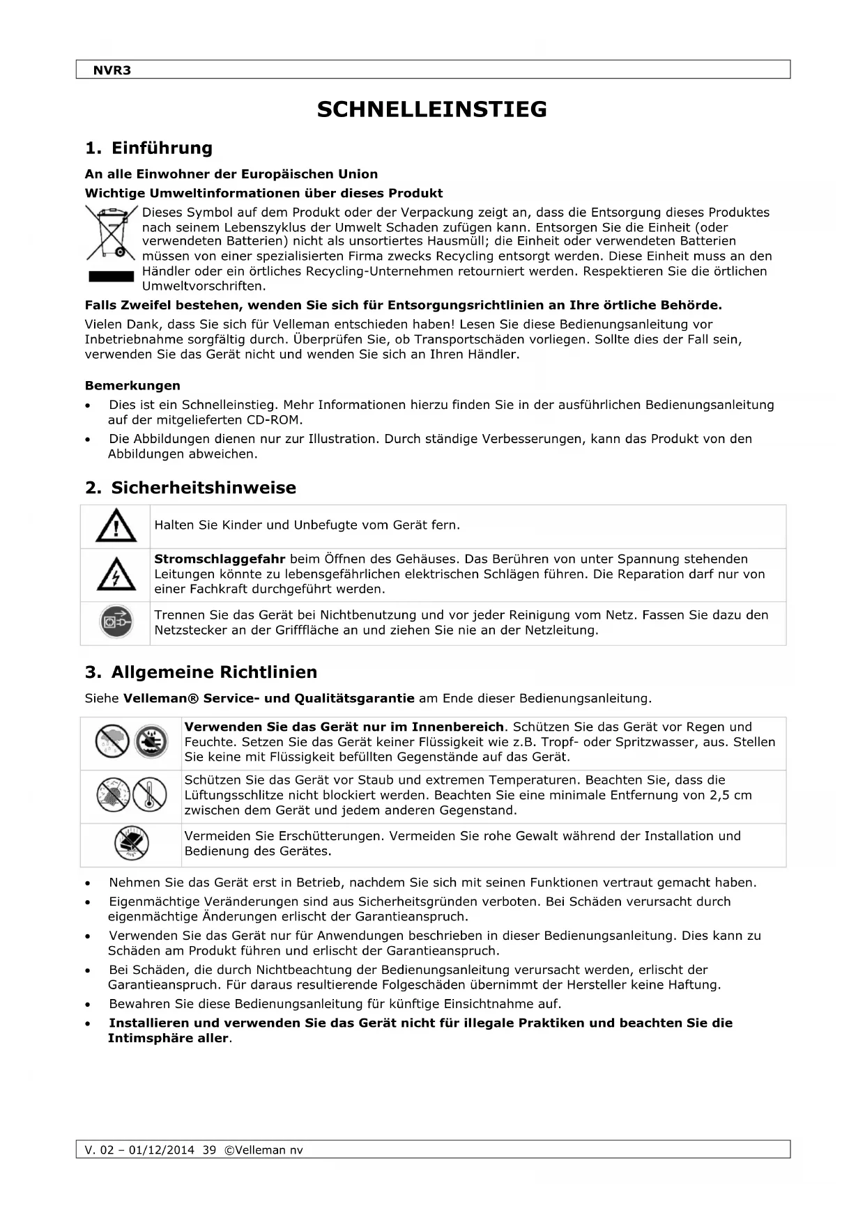 BEDIENUNGSANLEITUNG NVR3 VELLEMAN
