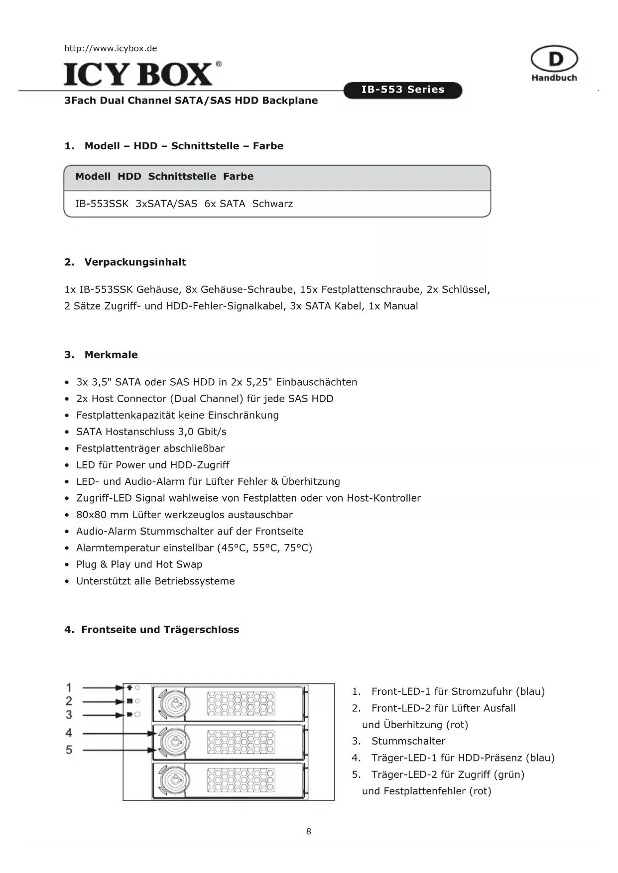Modell HDD Schnittstelle Farbe IB-553SSK 3xSATA/SAS 6x SATA Schwarz