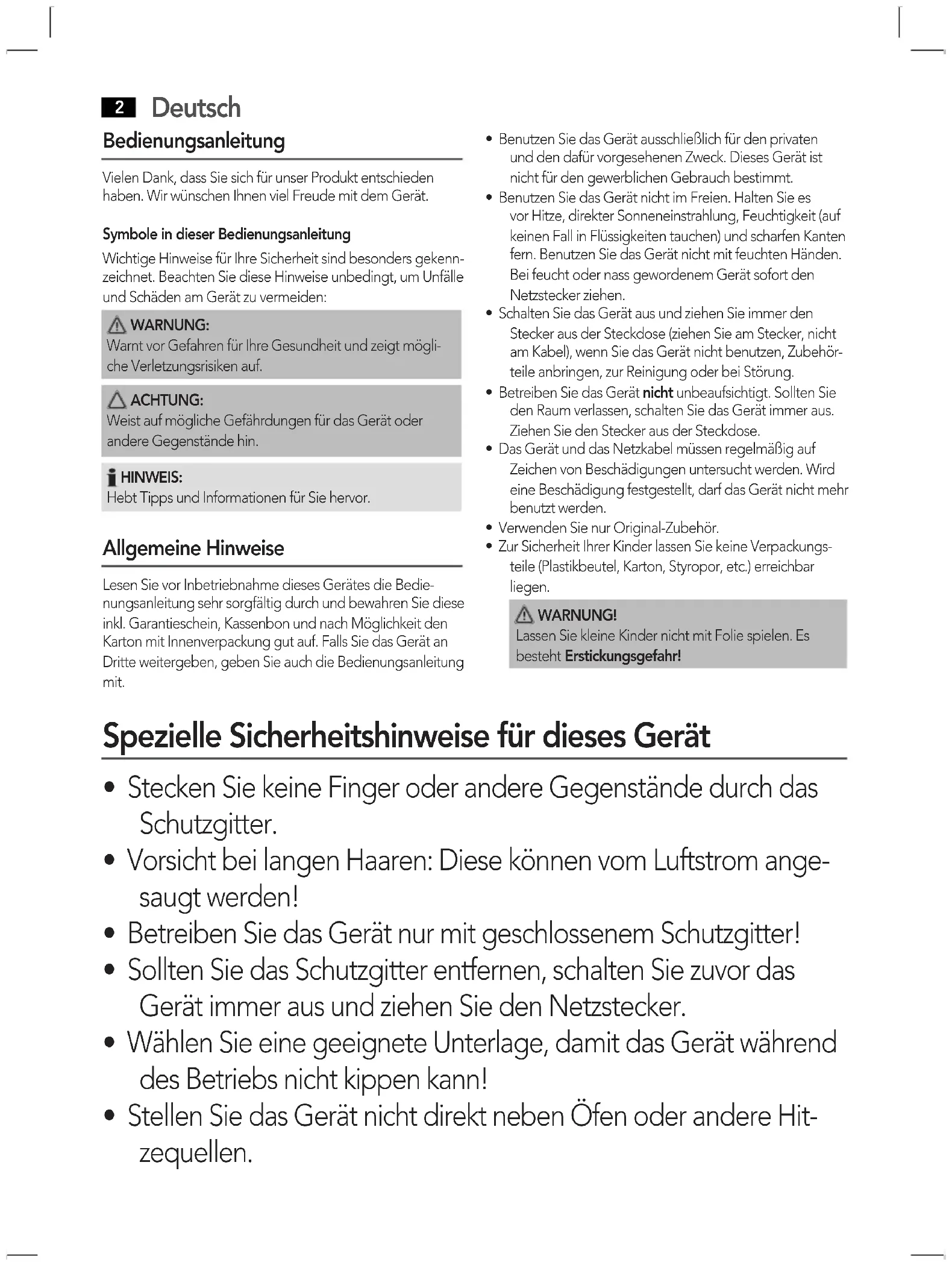 - Betreiben Sie das Gerät nur mit geschlossenem Schutzgitter!