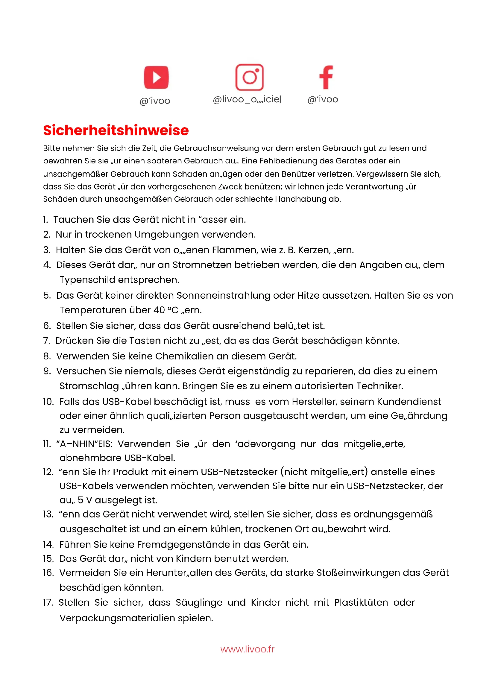 Stellen Sie sicher, dass Säuglinge und Kinder nicht mit Plastiktüten oder Verpackungsmaterialien spielen. @livoo_officiel