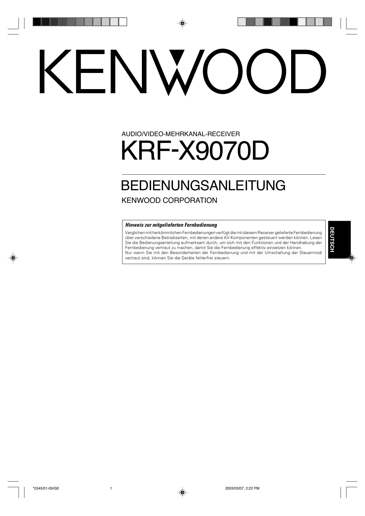 KRF-X9070D - Audio-/Video-Empfänger KENWOOD - Kostenlose Bedienungsanleitung
