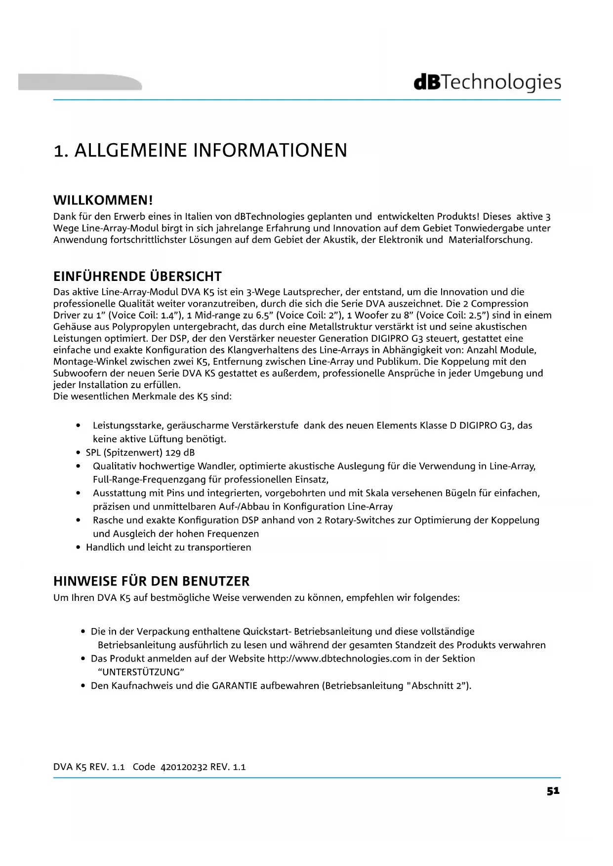 BEDIENUNGSANLEITUNG DVA K5 DB Technologies