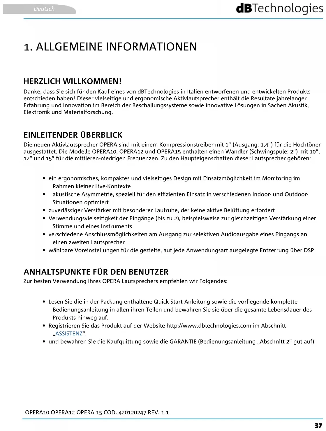 Finden Sie kostenlos die Bedienungsanleitung des Geräts Opera 12 DB Technologies als PDF.