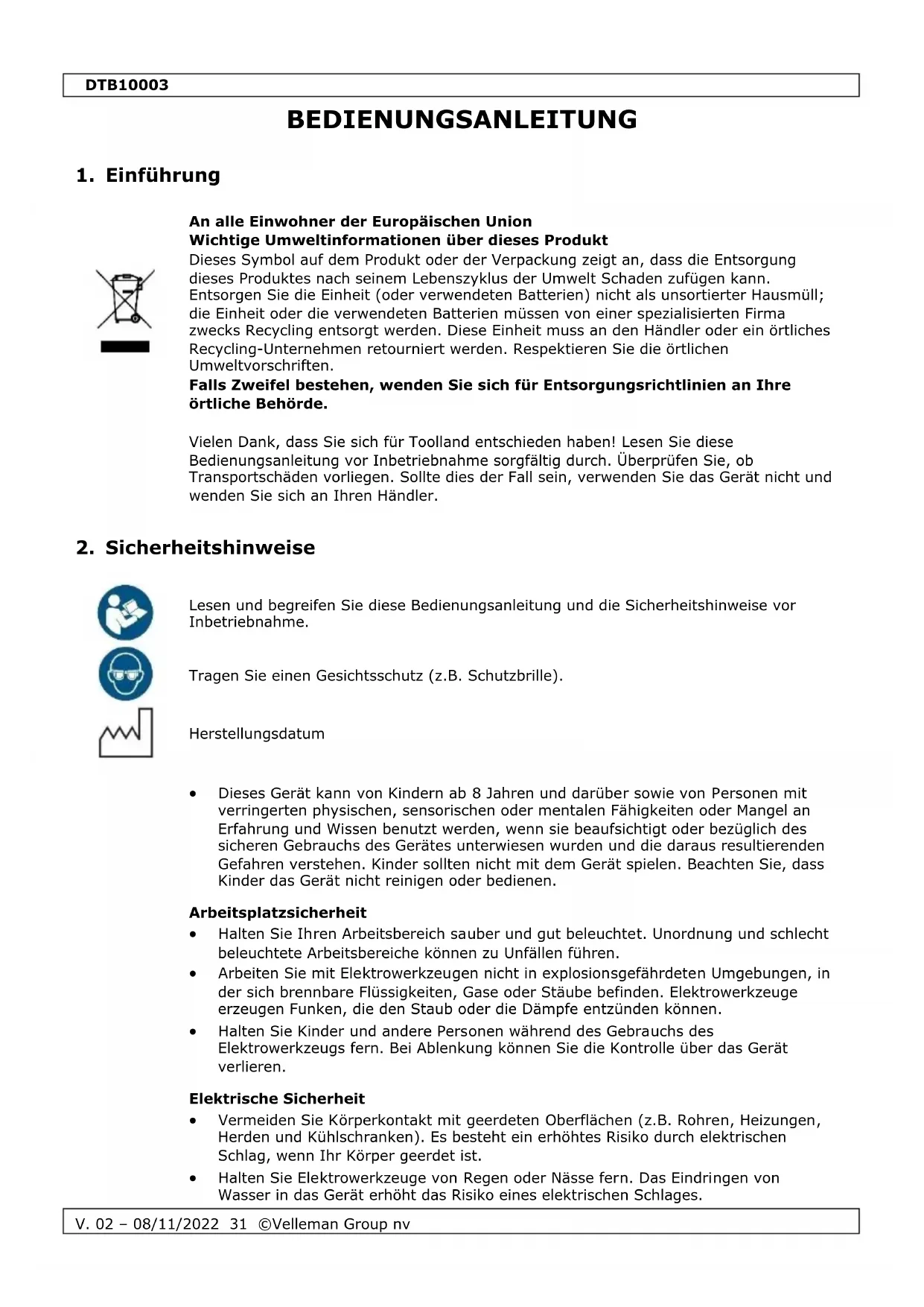 BEDIENUNGSANLEITUNG DTB10003 Toolland