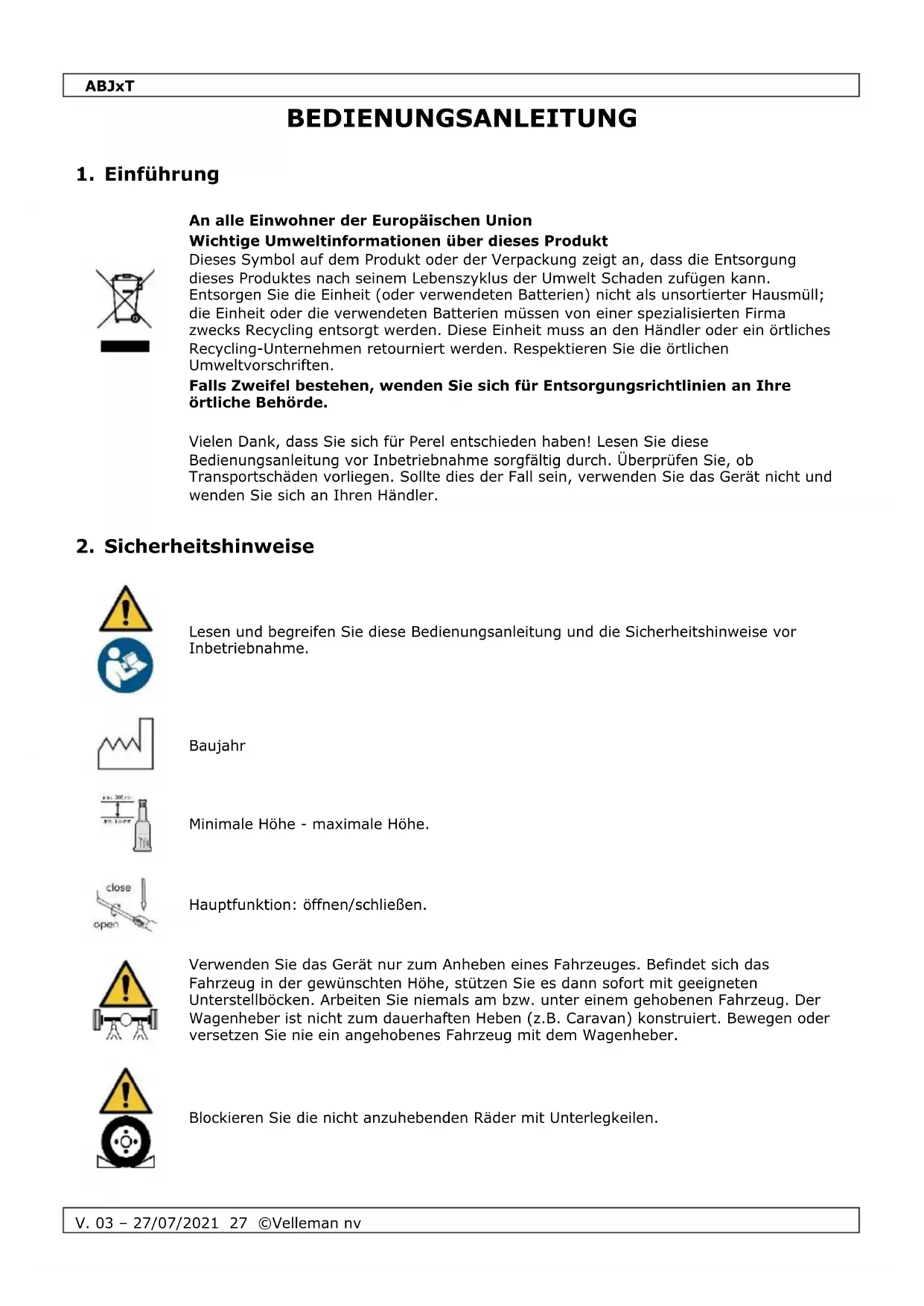 ABJ2T - Wagenheber Perel - Kostenlose Bedienungsanleitung