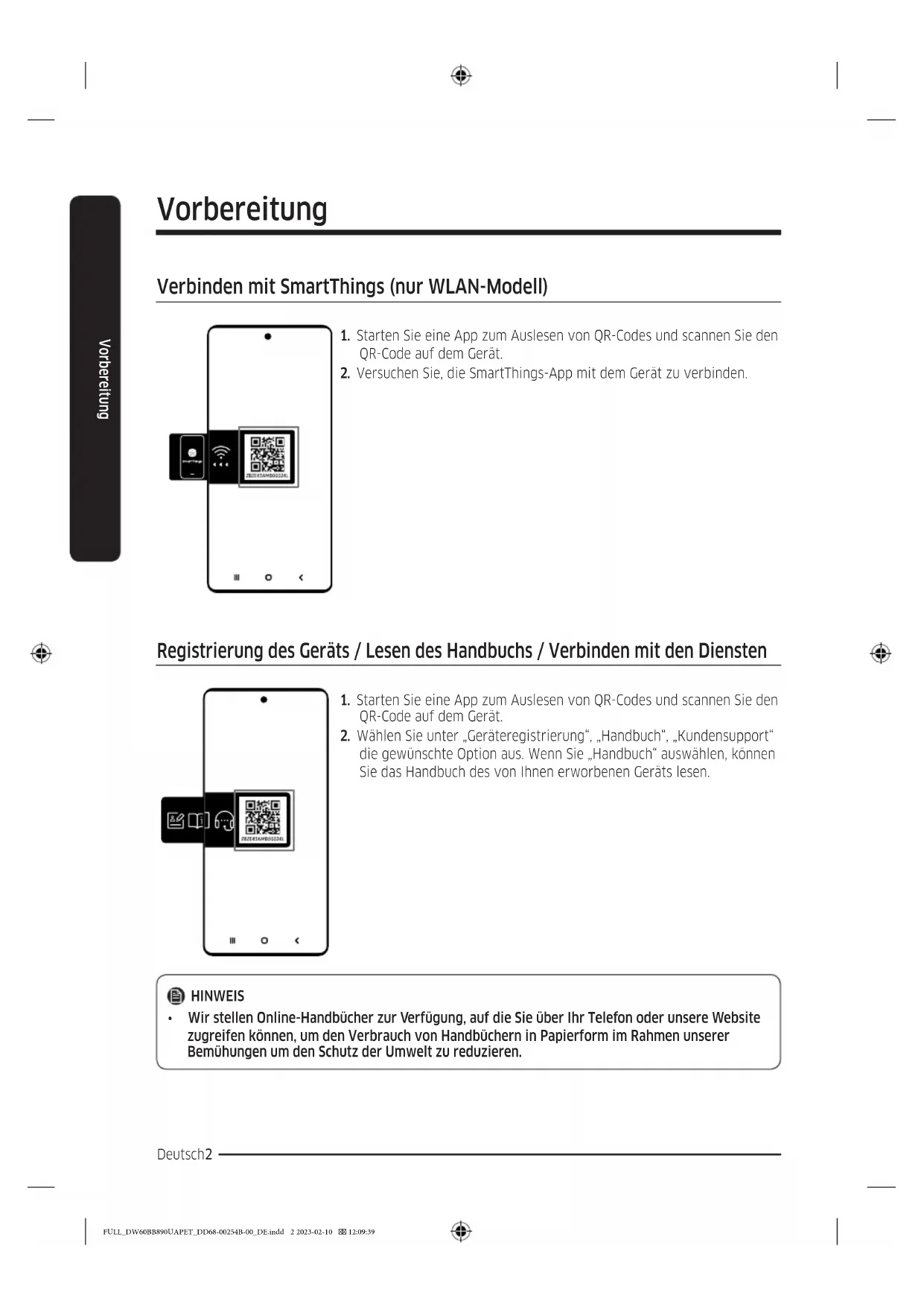 - in Frühstückspensionen und ähnlichen Umgebungen. FULL_DW60BB890UAPET_DD68-00254B-00_DE.indd 8 2023-02-10 12:09:39Deutsch 9 Sicherheitsinformationen Anweisungen zur Bedienung der Spülmaschine Diese Spülmaschine ist nicht für den Einsatz im gewerblichen Umfeld geeignet. Sie ist für den Einsatz in Privathaushalten und in ähnlichen Arbeits- und Wohnumgebungen bestimmt: