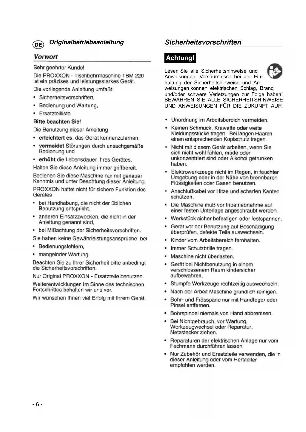 BEDIENUNGSANLEITUNG TBM 220 PROXXON