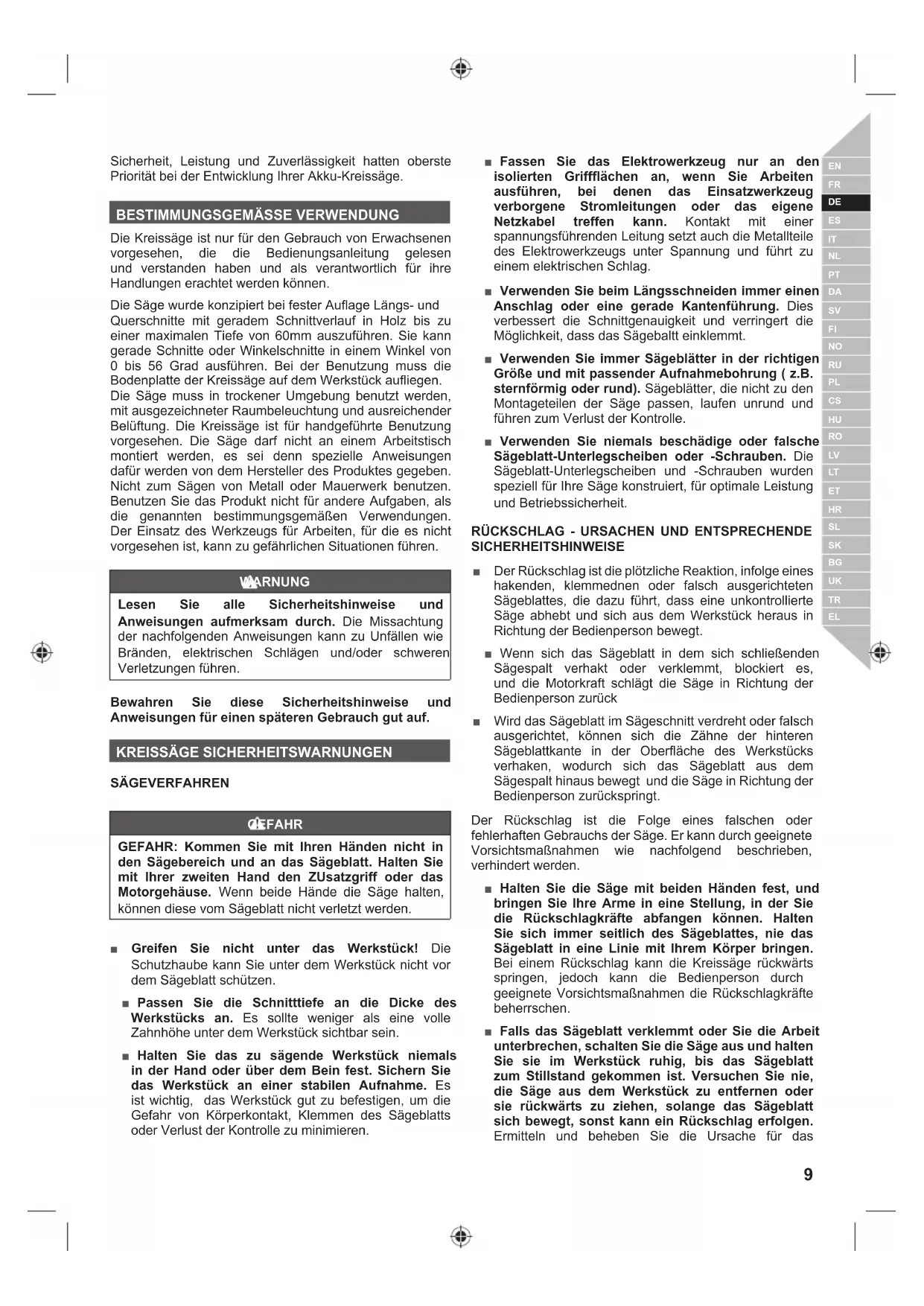 KREISSÄGE SICHERHEITSWARNUNGEN