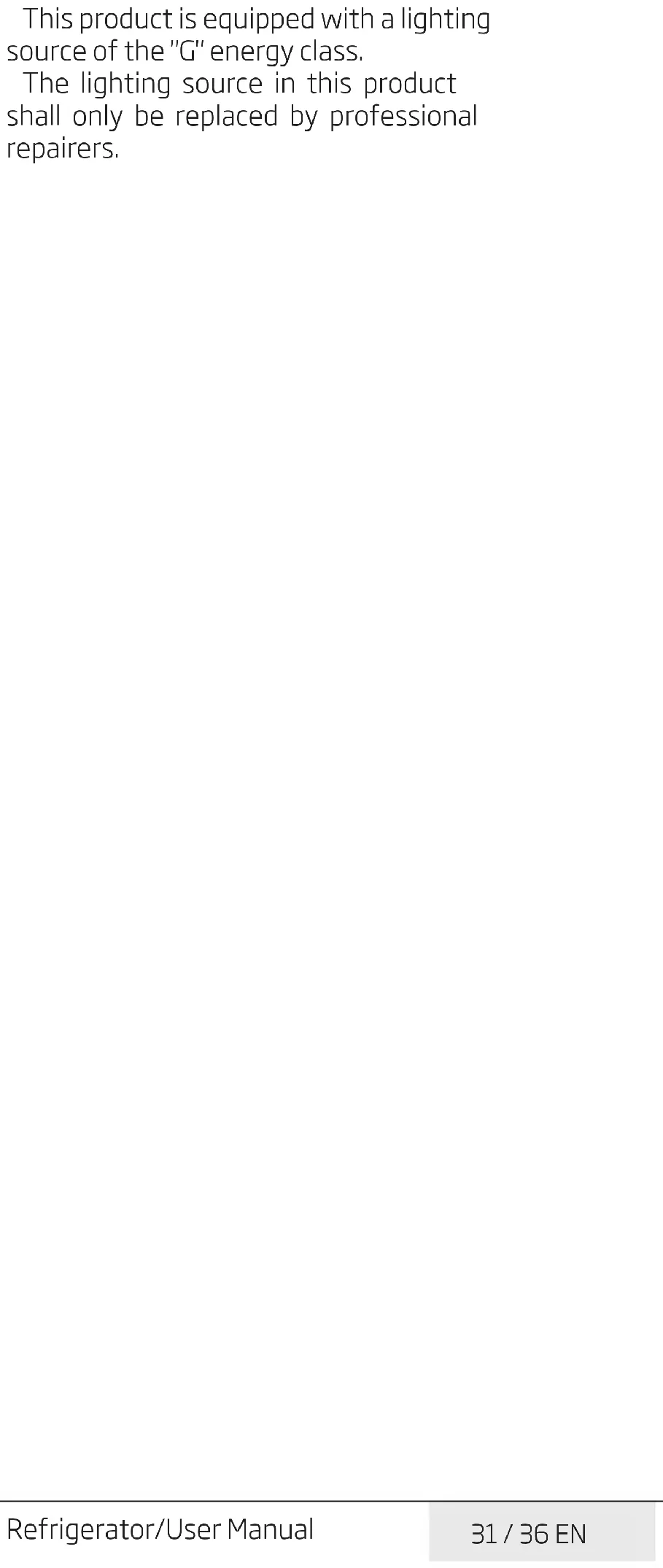 - Achten Sie darauf, das Kühlsystem oder die Rohrleitungen während des Transports nicht zu beschädigen. Wenn die Rohrleitungen beschädigt sind, betreiben Sie das Produkt nicht und wenden Sie sich an den autorisierten Kundendienst.6 / 36 DE Kühlschrank/Bedienungsanleitung Sicherheits- und Umweltschutzanweisungen