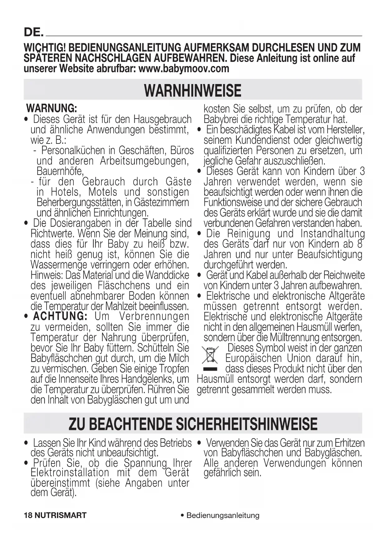 SPÄTEREN NACHSCHLAGEN AUFBEWAHREN. Diese Anleitung ist online auf unserer Website abrufbar: www.babymoov.com19NUTRISMART
